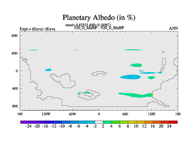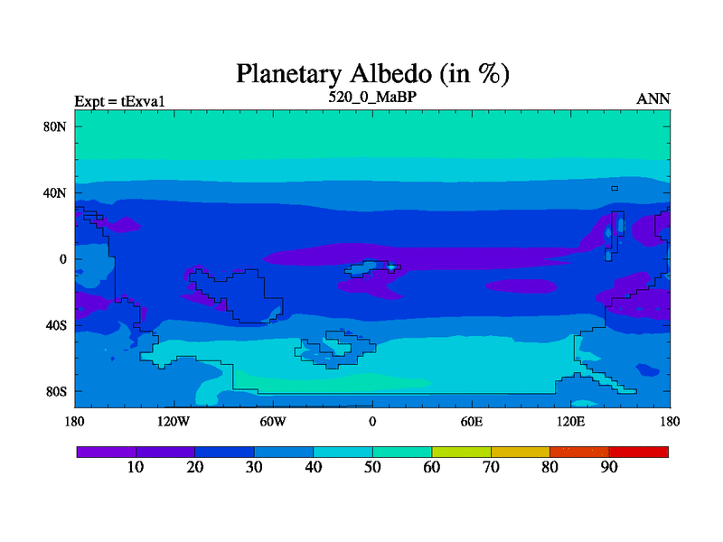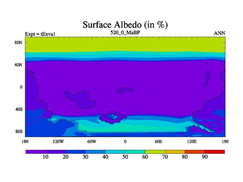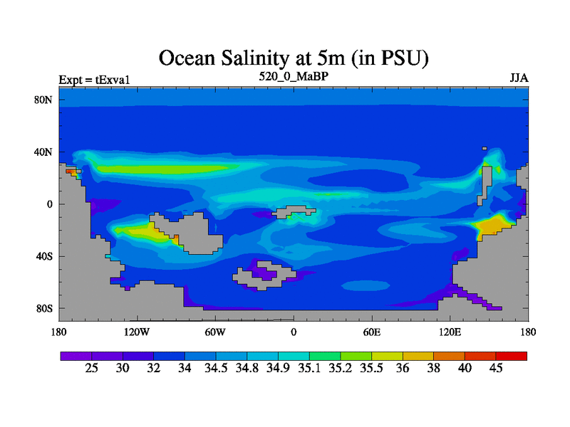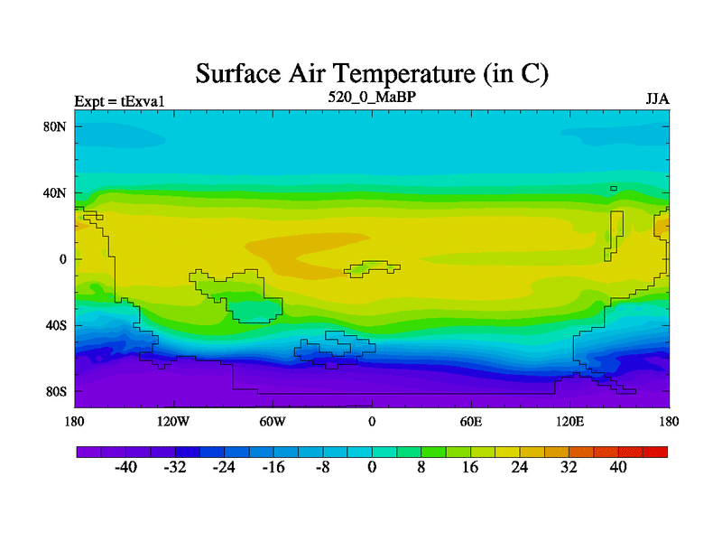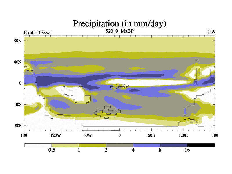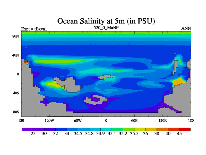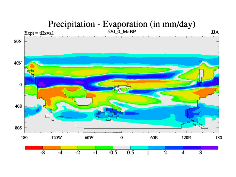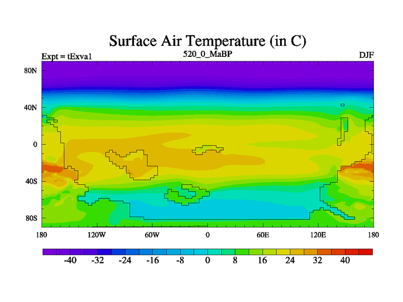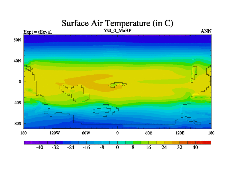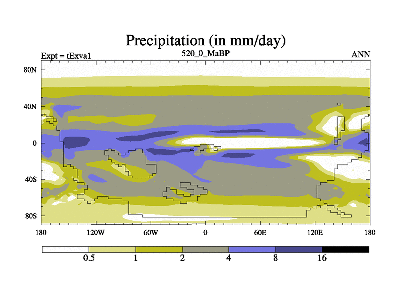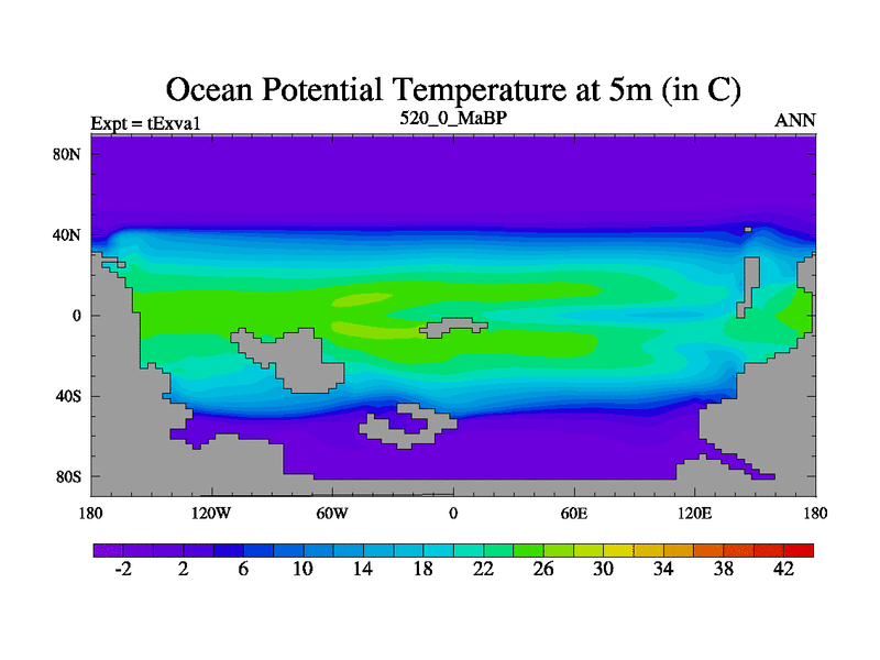 This is the 520.0 Ma simulation using the Scotese palaeogeographies.