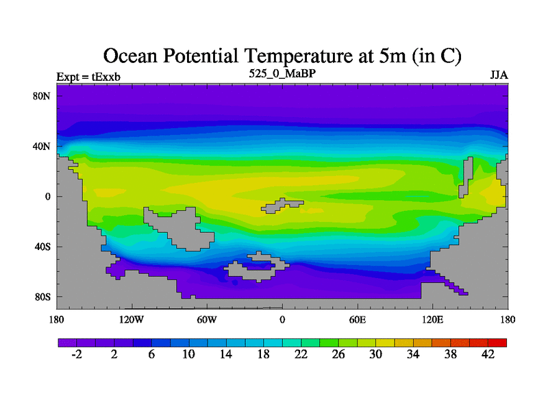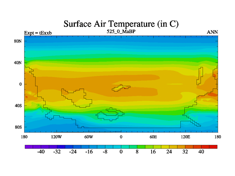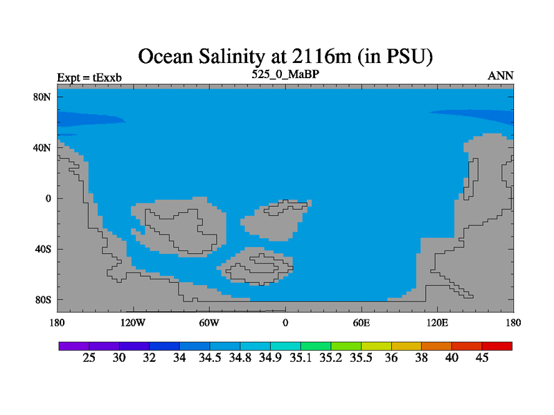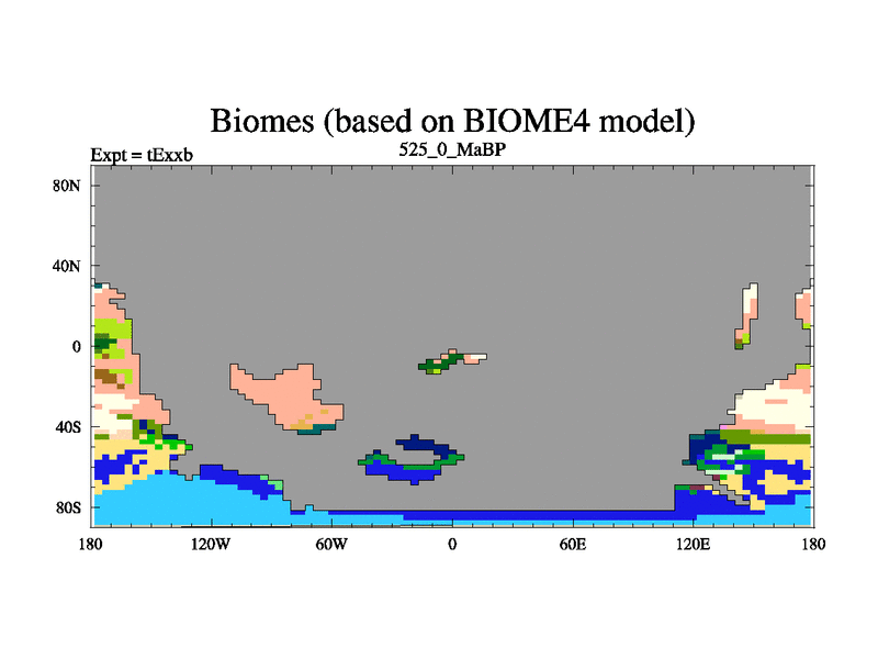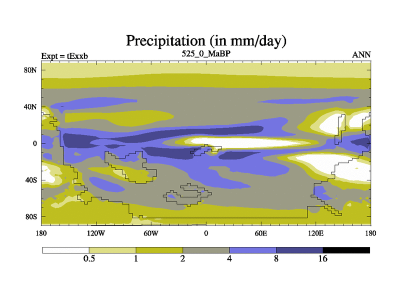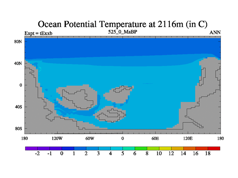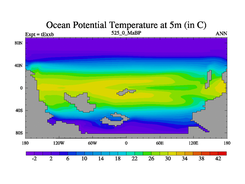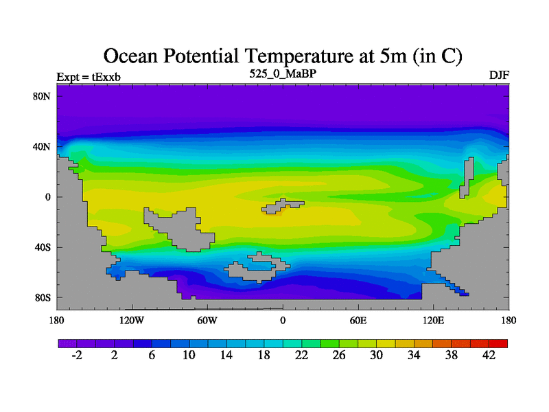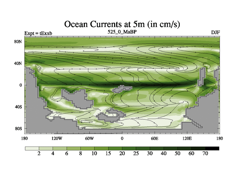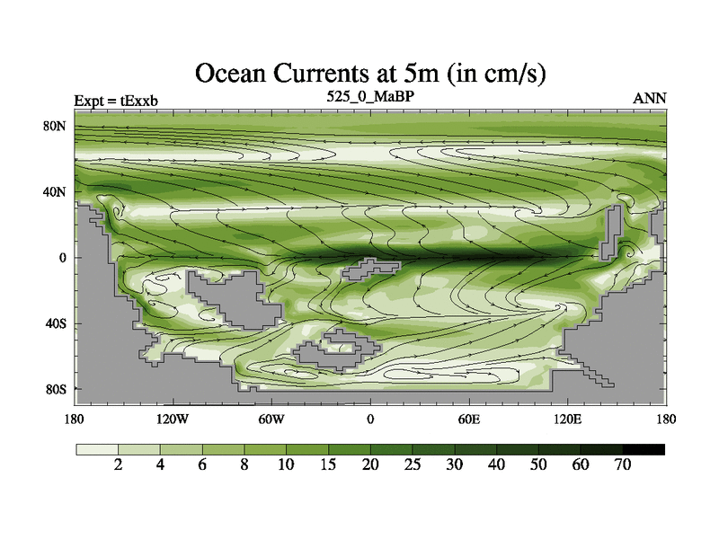 This is the 525.0 Ma simulation using the Scotese palaeogeographies.