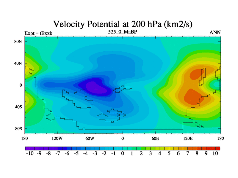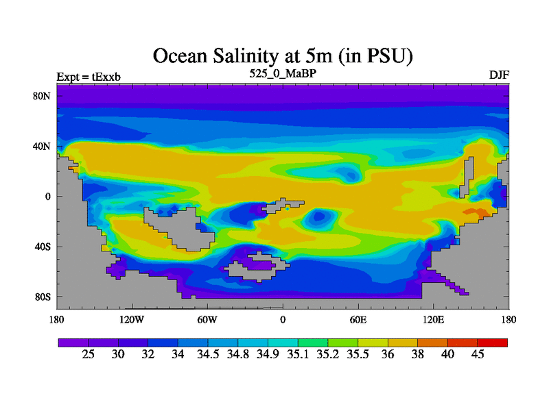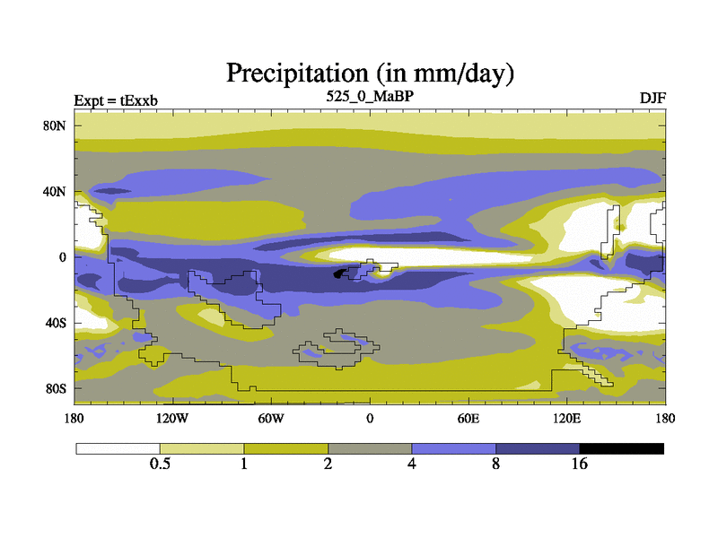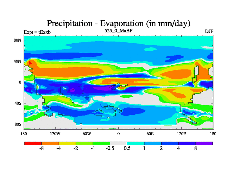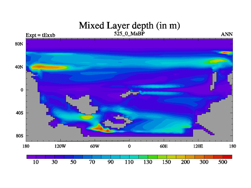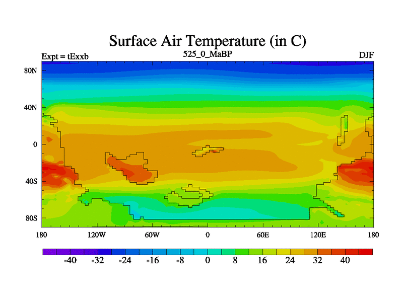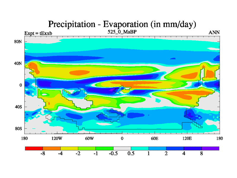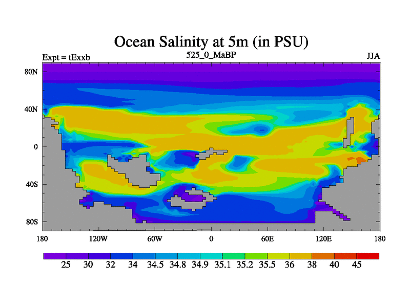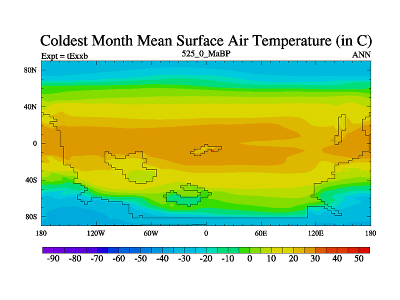 This is the 525.0 Ma simulation using the Scotese palaeogeographies.