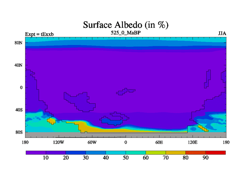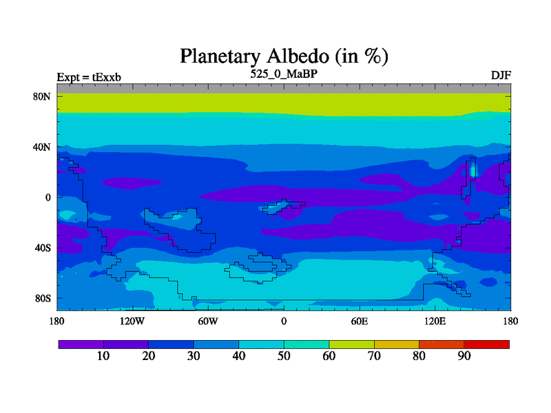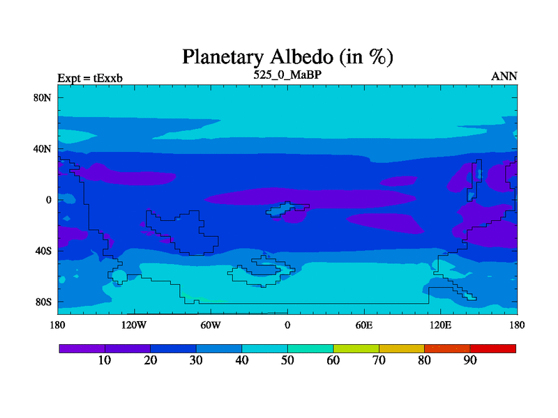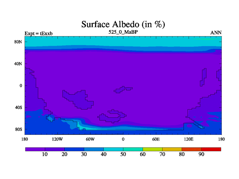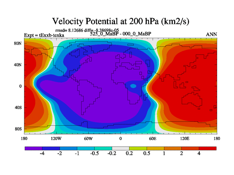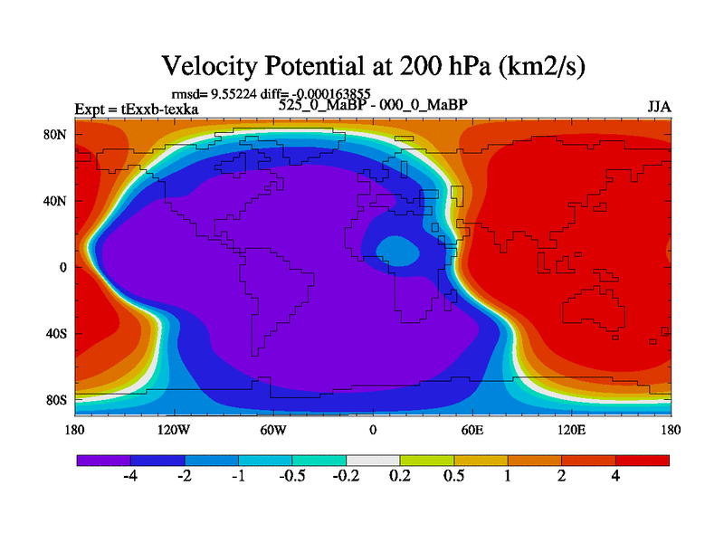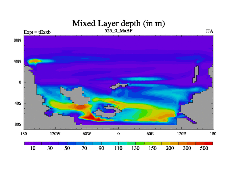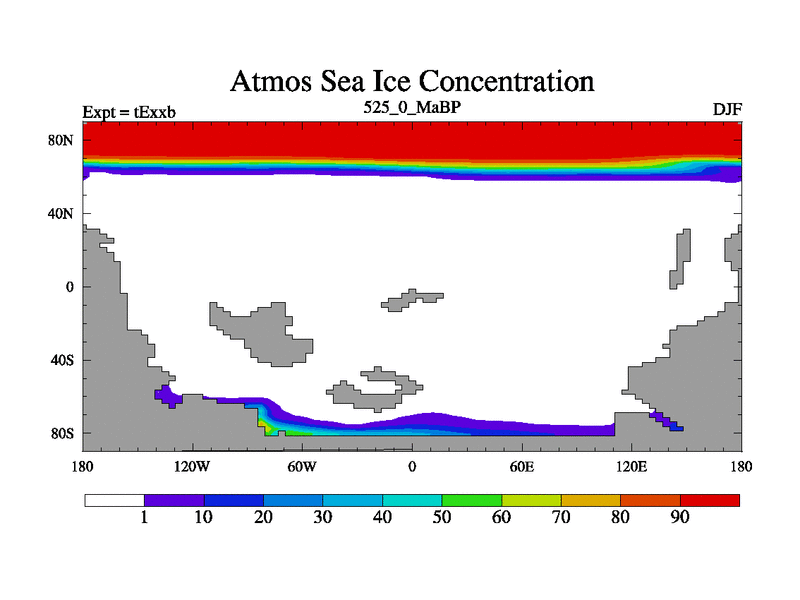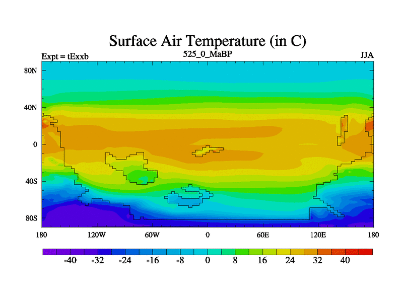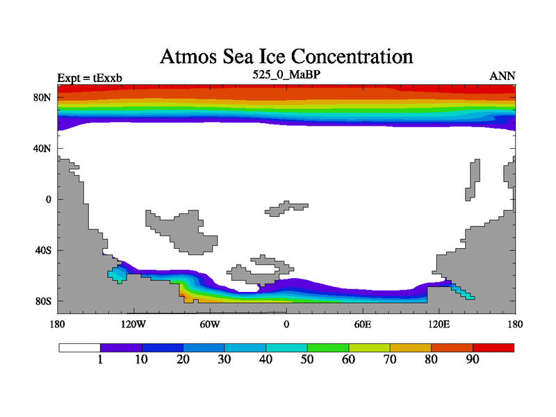 This is the 525.0 Ma simulation using the Scotese palaeogeographies.