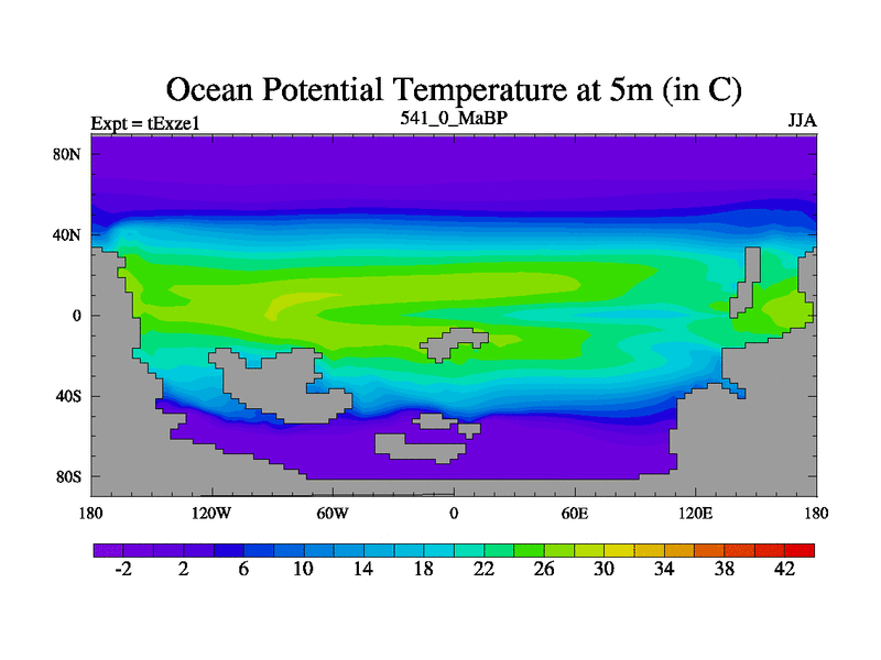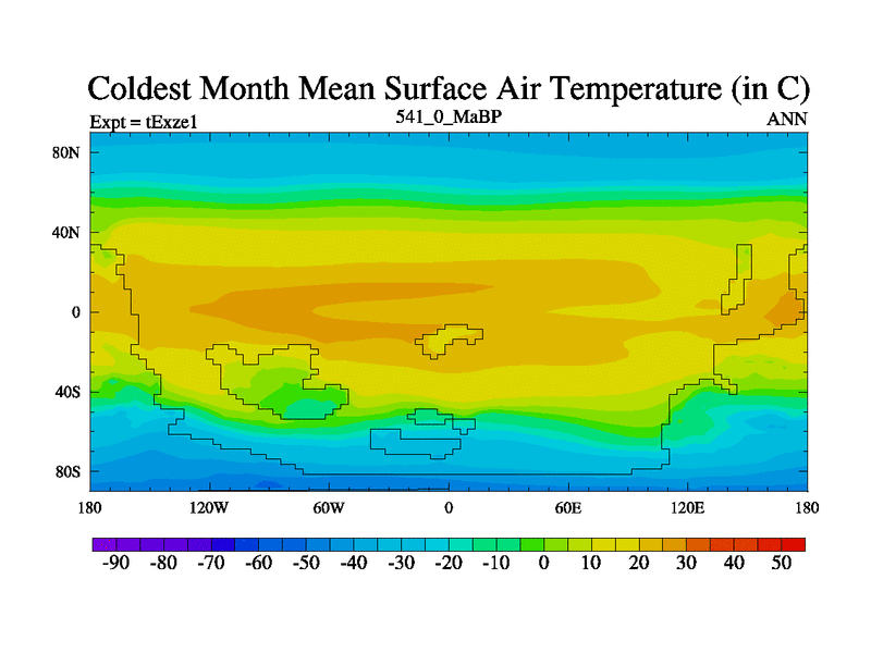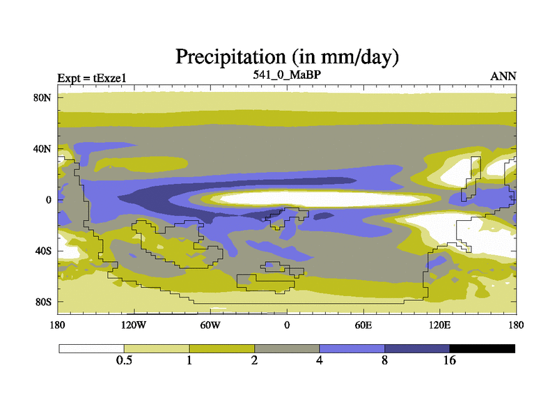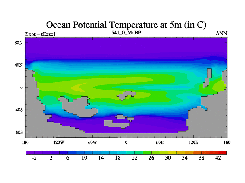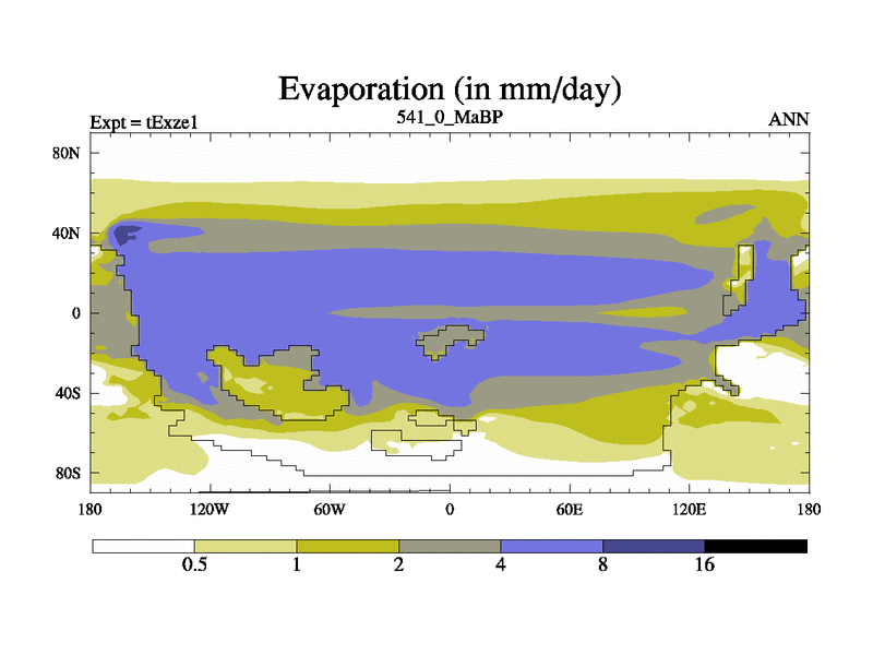 This is the 541.0 Ma simulation using the Scotese palaeogeographies. Extension of the tex[f..j] series.