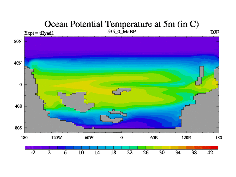 This is the 535.0 Ma simulation using the Scotese palaeogeographies. Extension of the tex[f..j] series.