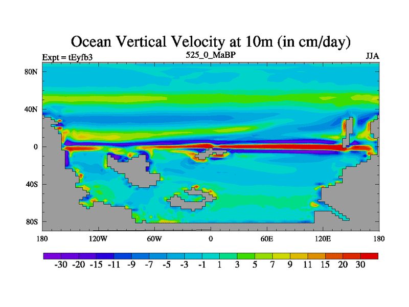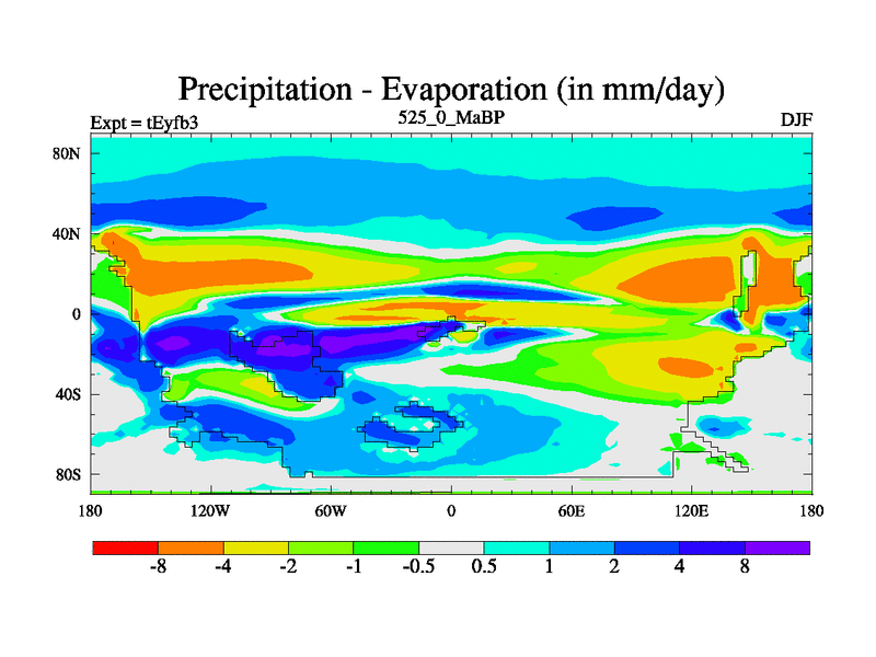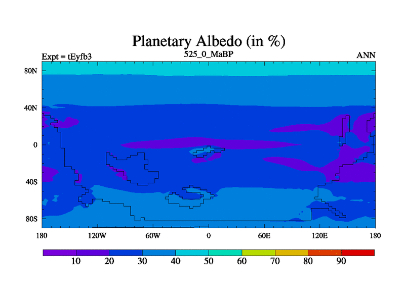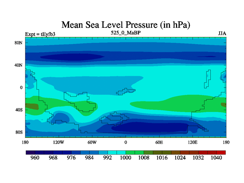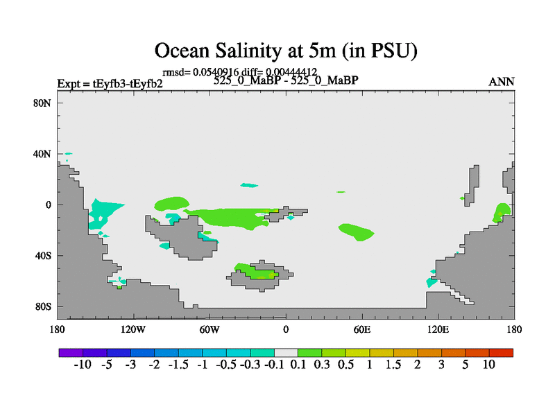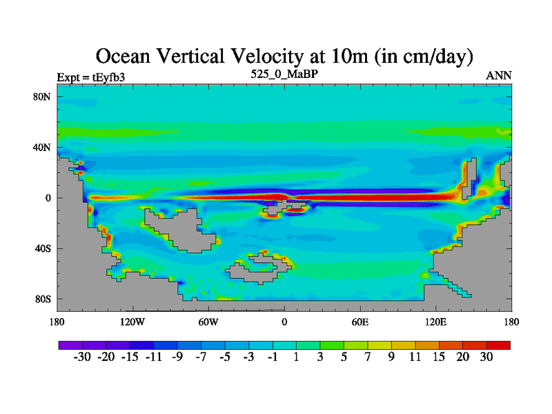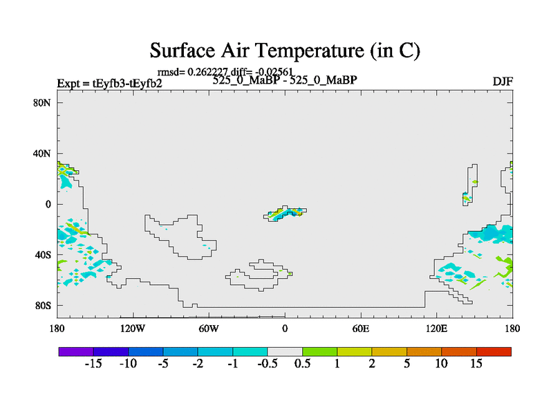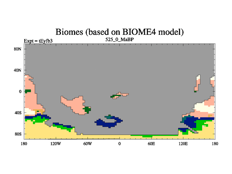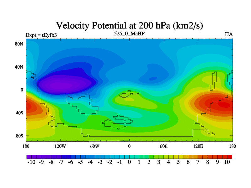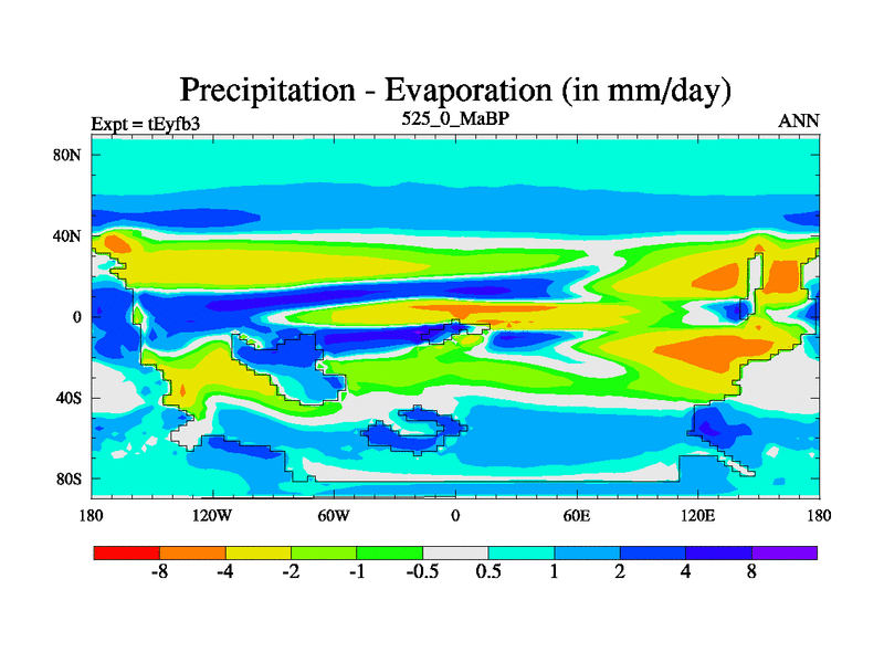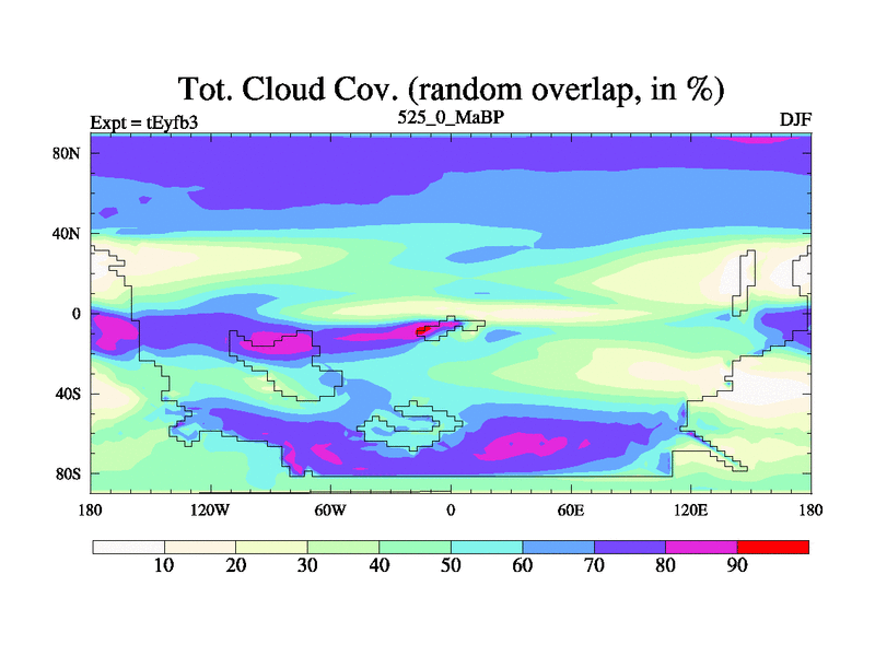 This is the 525.0 Ma simulation using the Scotese palaeogeographies and revised CCN etc. Updated HadCM3L ocean parameters and soil parameters. Also made sure orography gravity wave drag was consistent.