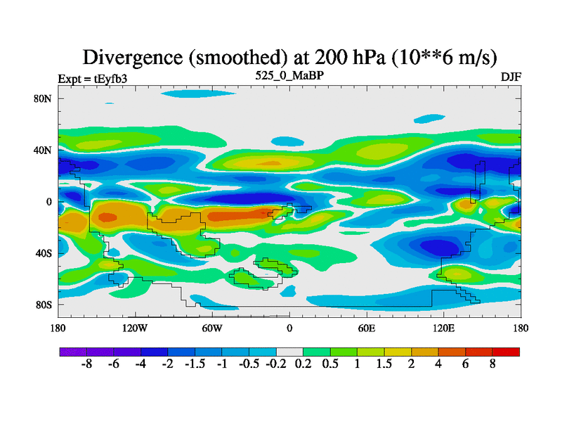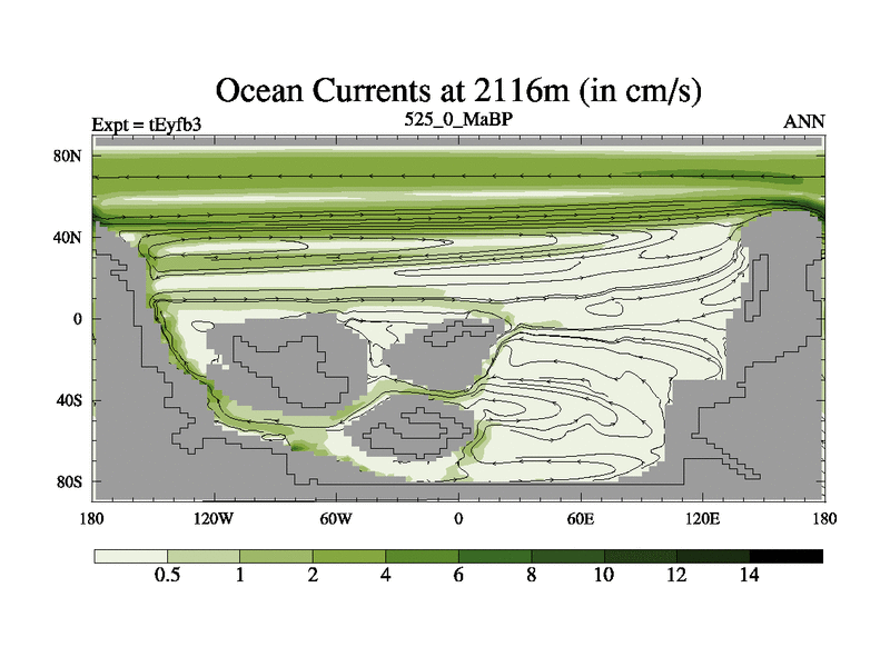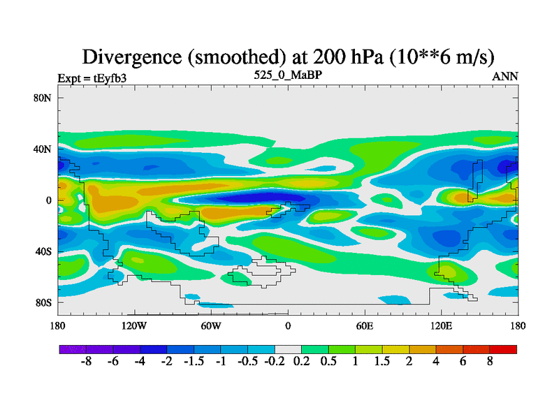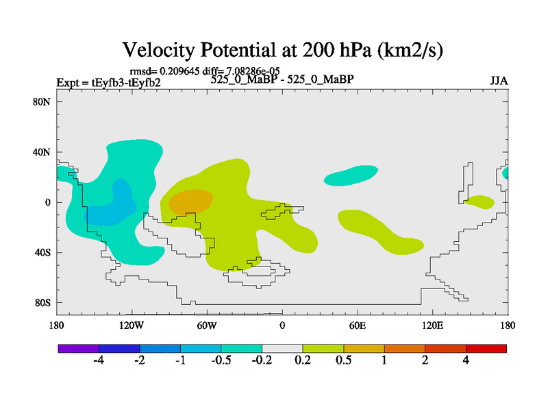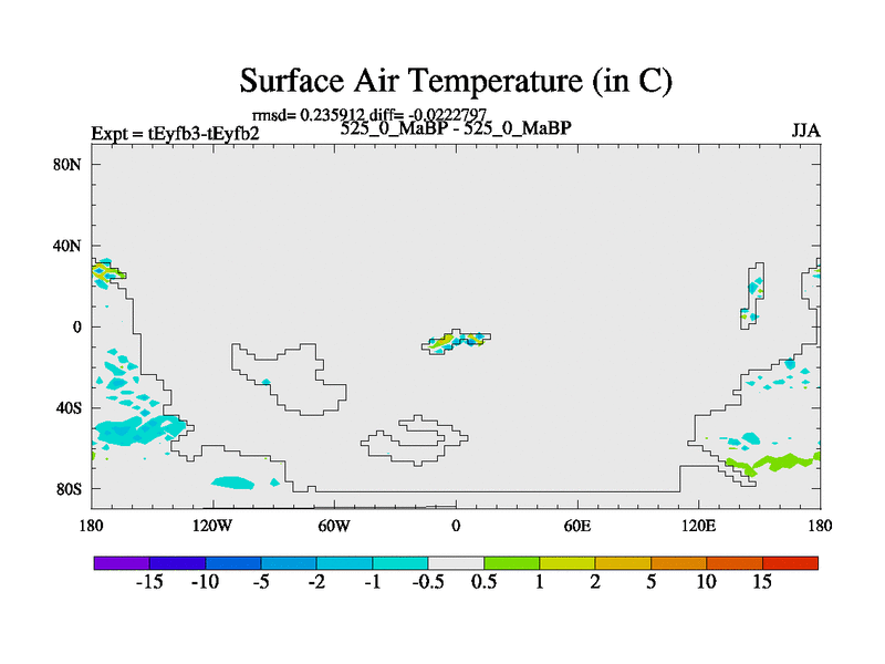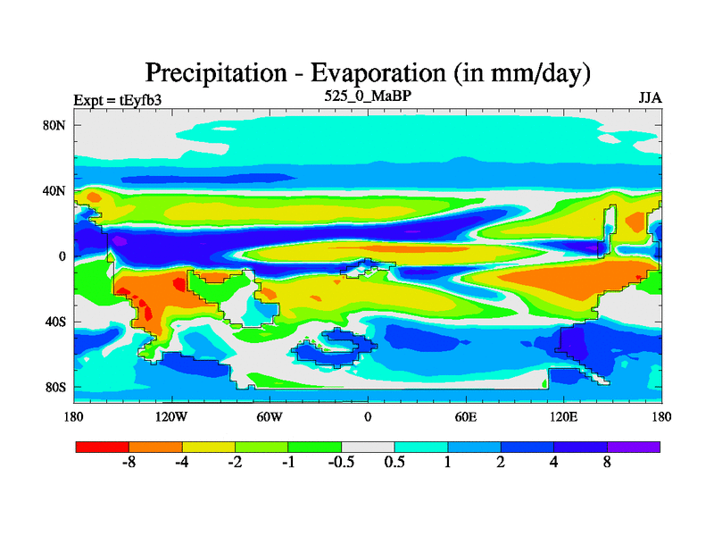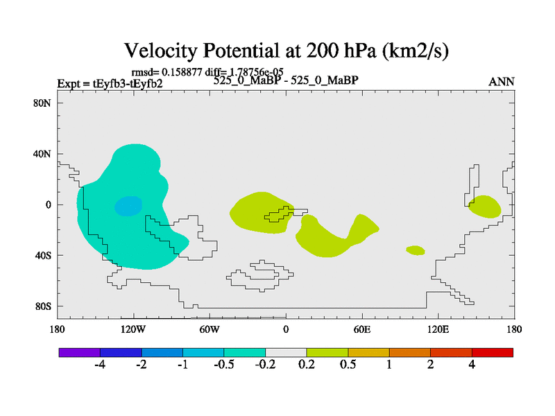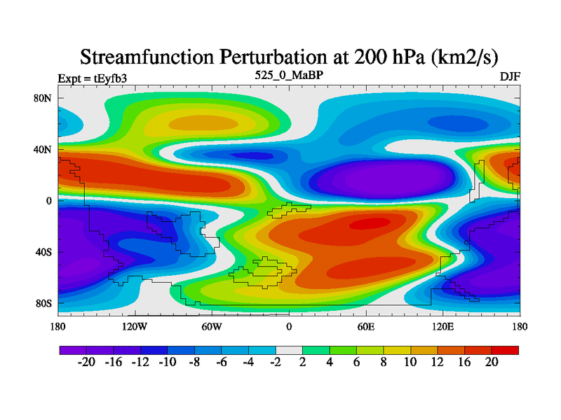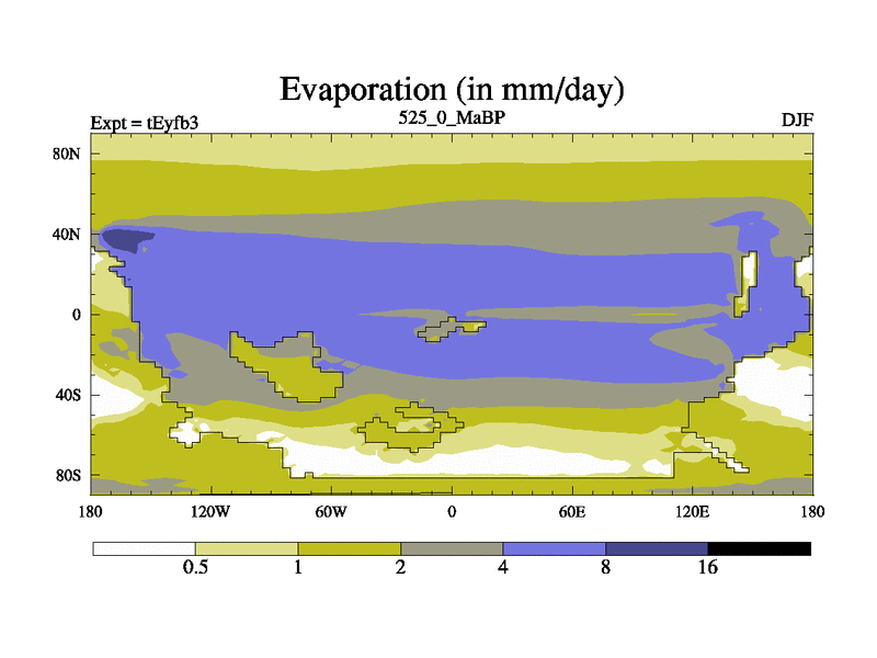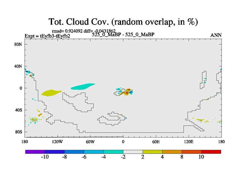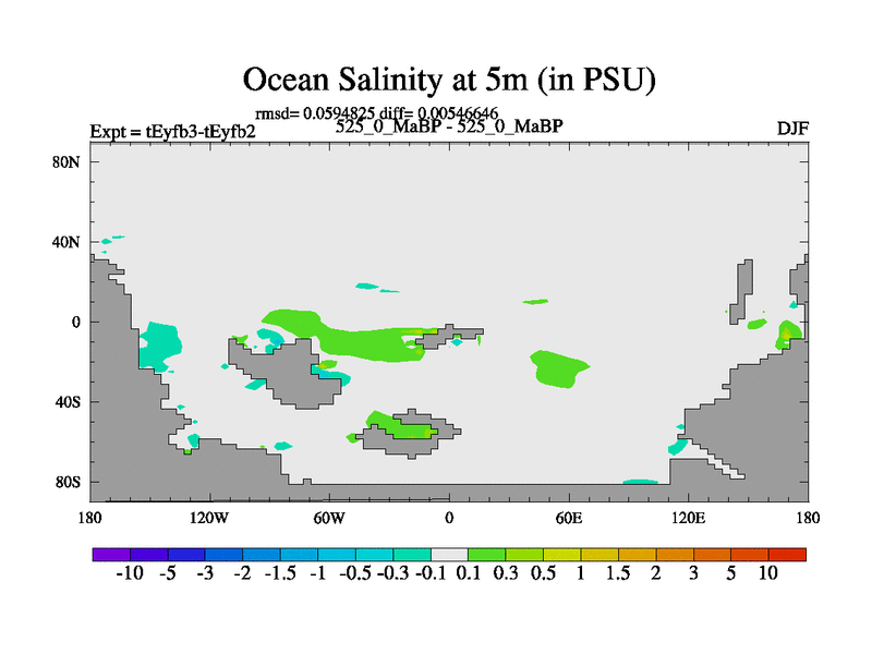 This is the 525.0 Ma simulation using the Scotese palaeogeographies and revised CCN etc. Updated HadCM3L ocean parameters and soil parameters. Also made sure orography gravity wave drag was consistent.