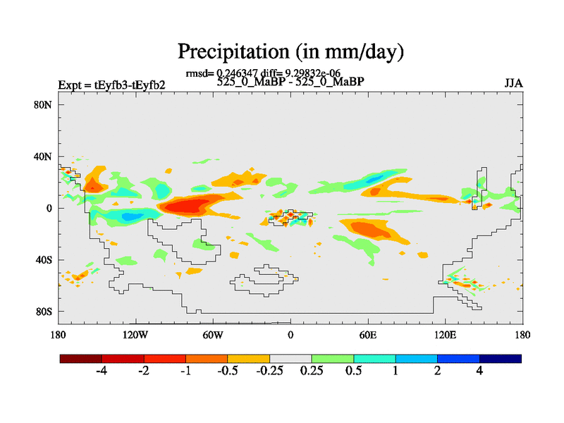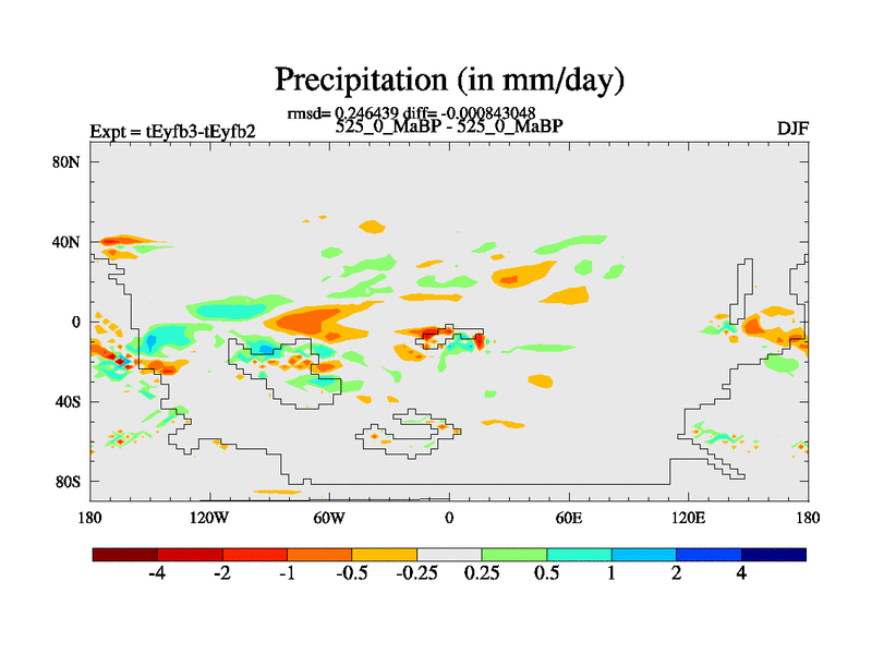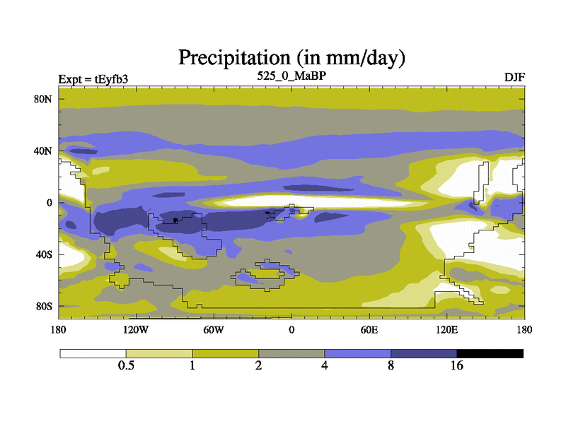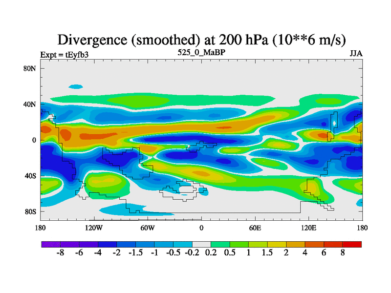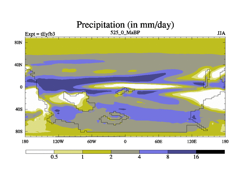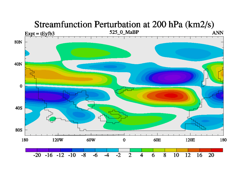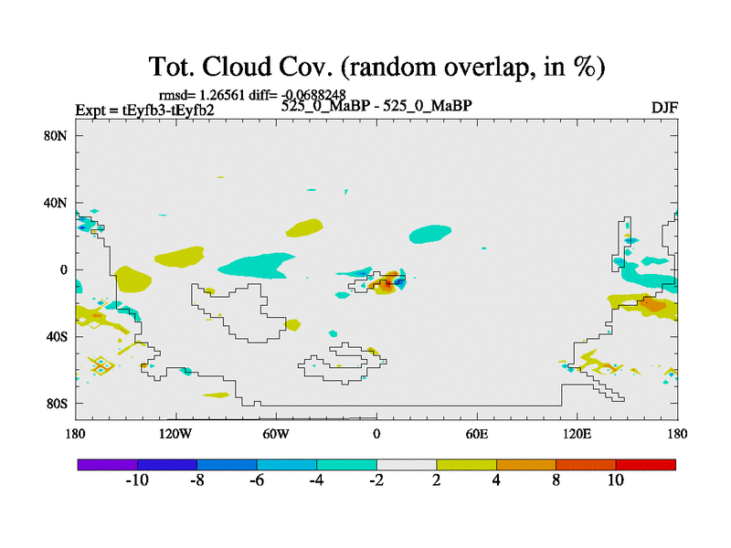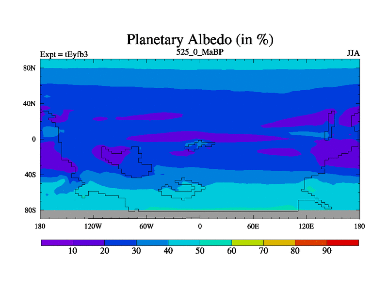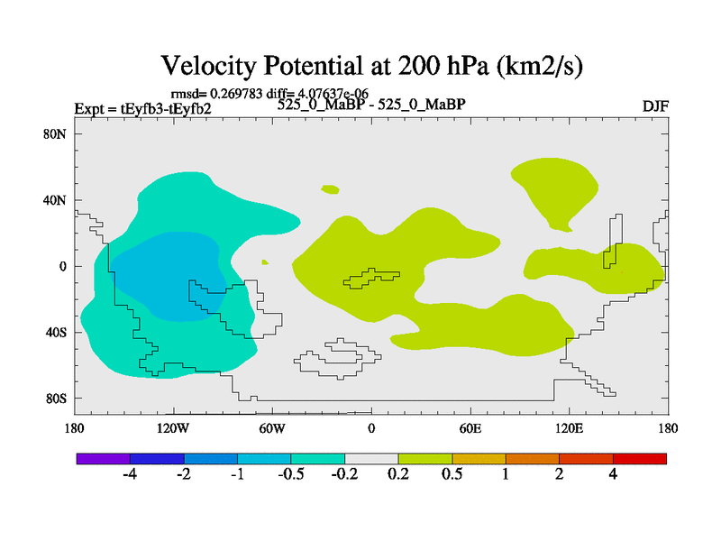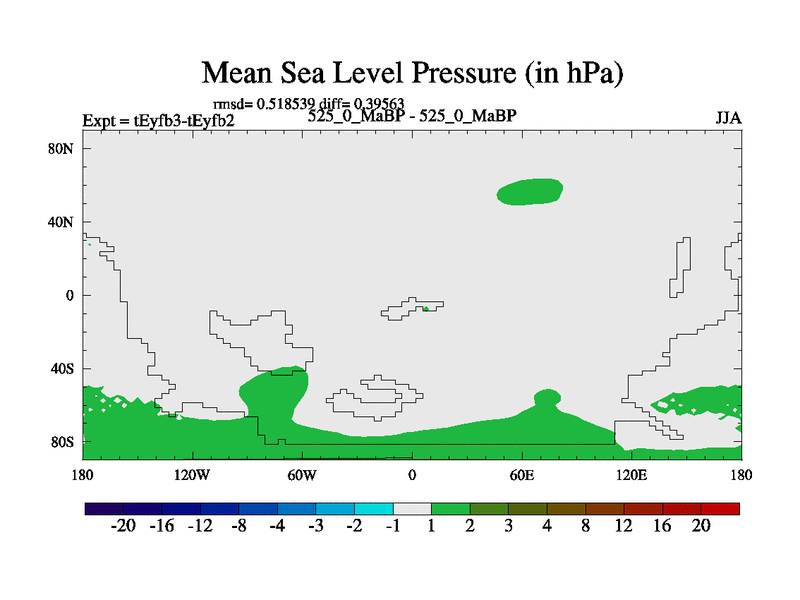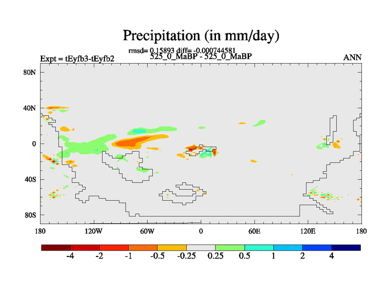 This is the 525.0 Ma simulation using the Scotese palaeogeographies and revised CCN etc. Updated HadCM3L ocean parameters and soil parameters. Also made sure orography gravity wave drag was consistent.