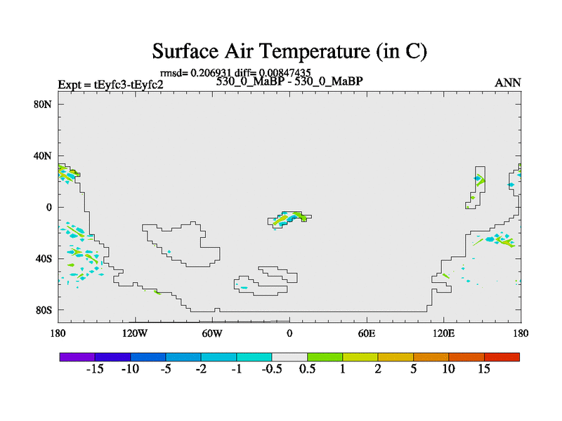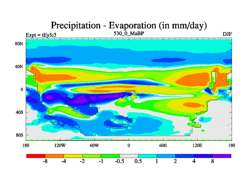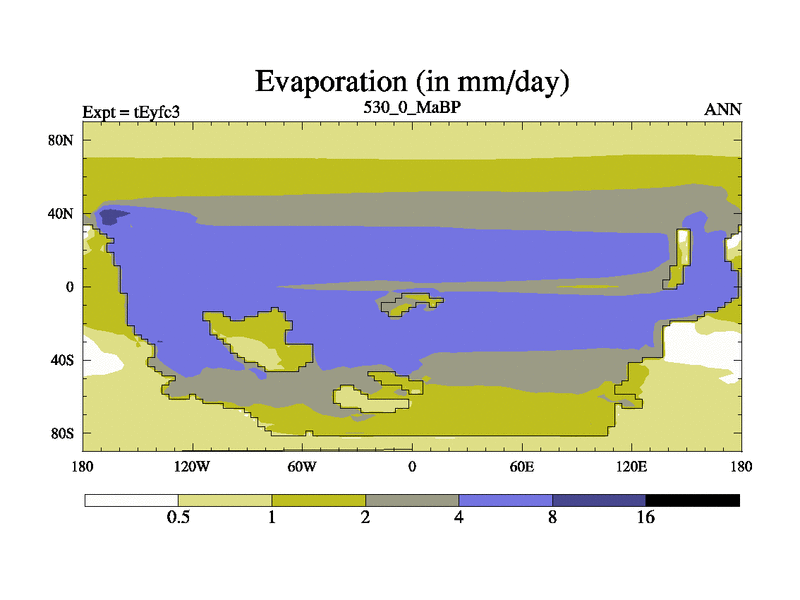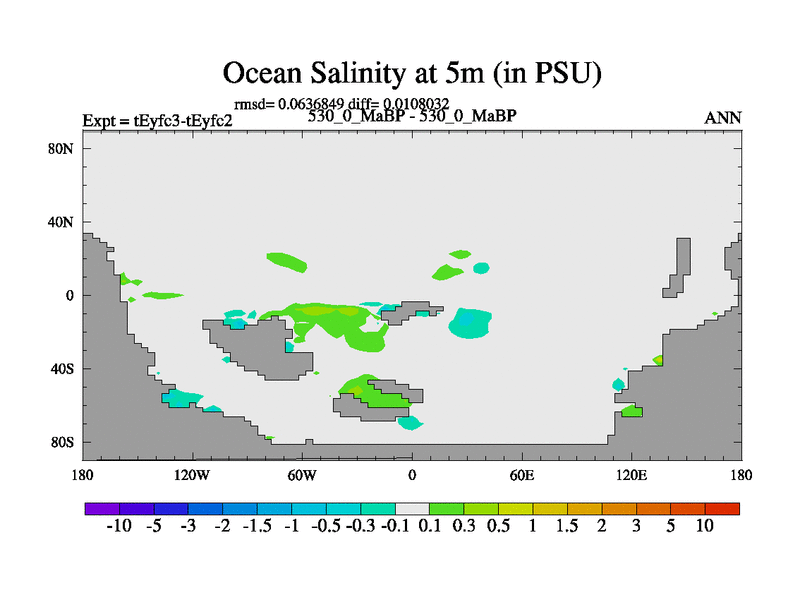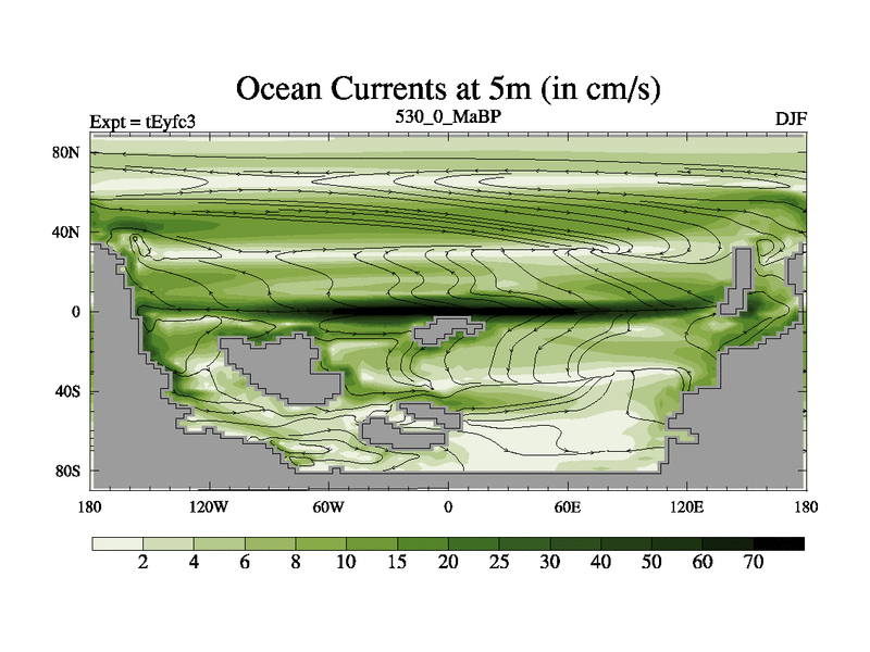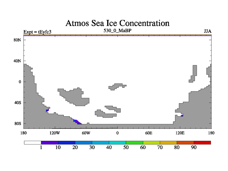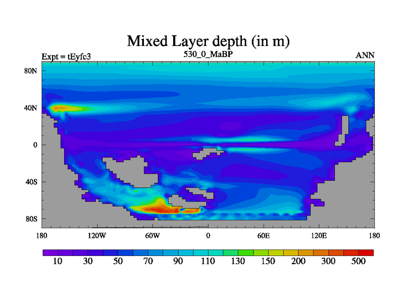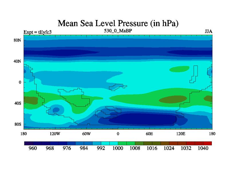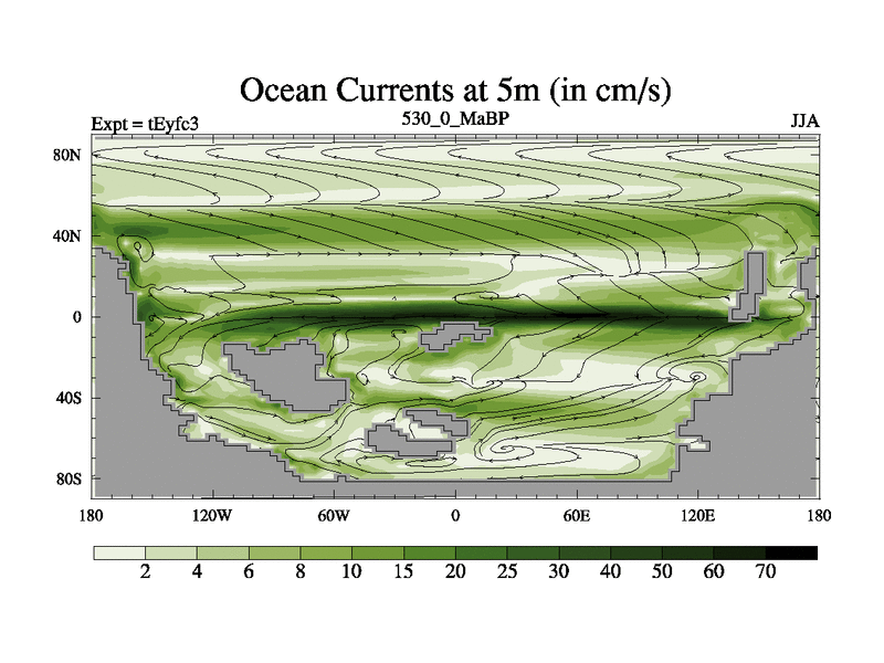 This is the 530.0 Ma simulation using the Scotese palaeogeographies and revised CCN etc. Updated HadCM3L ocean parameters and soil parameters. Also made sure orography gravity wave drag was consistent.