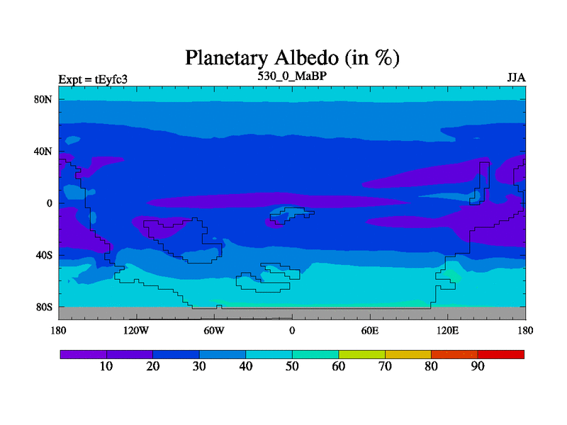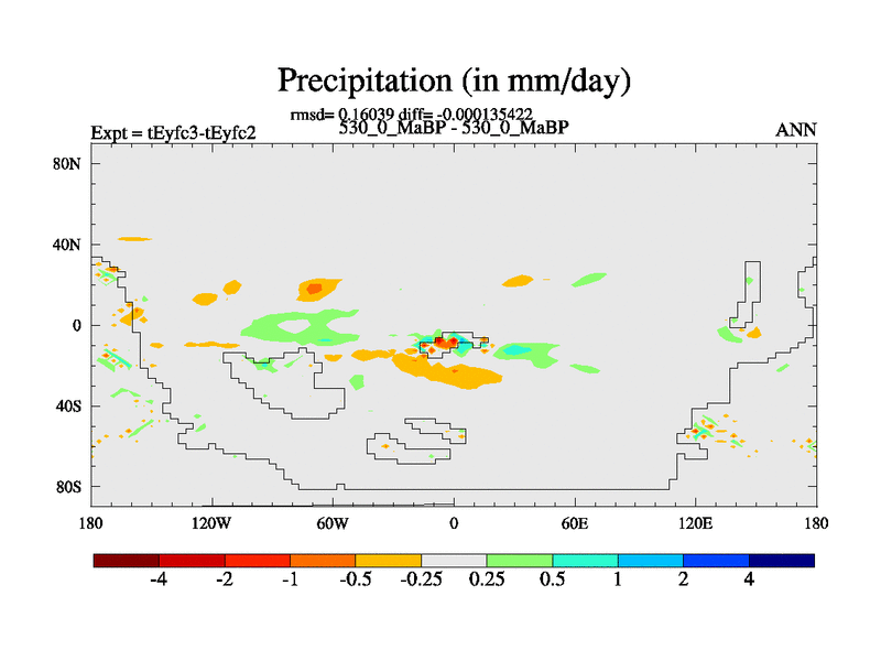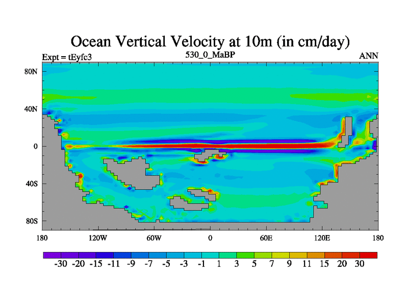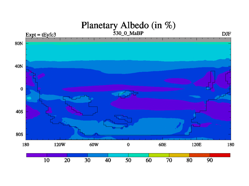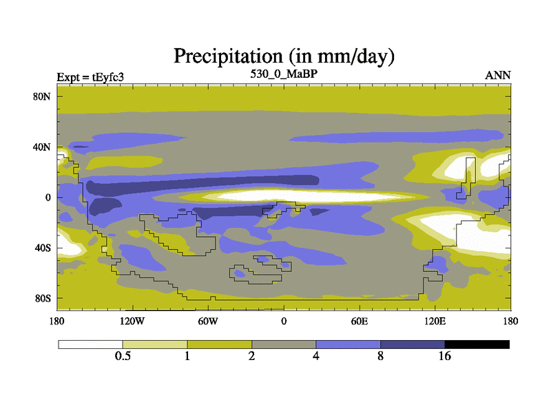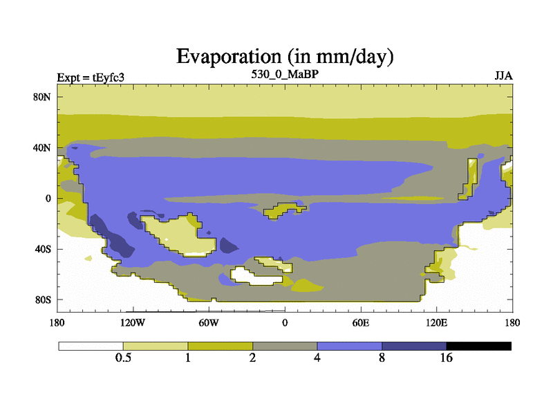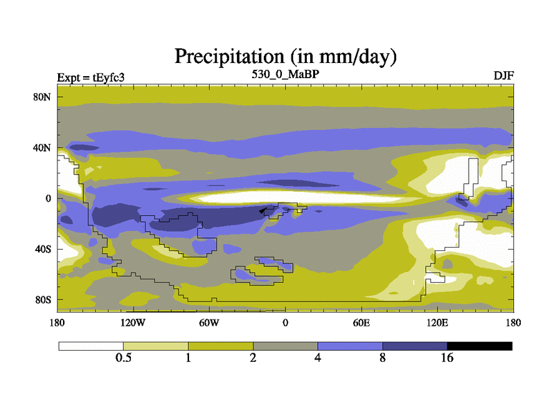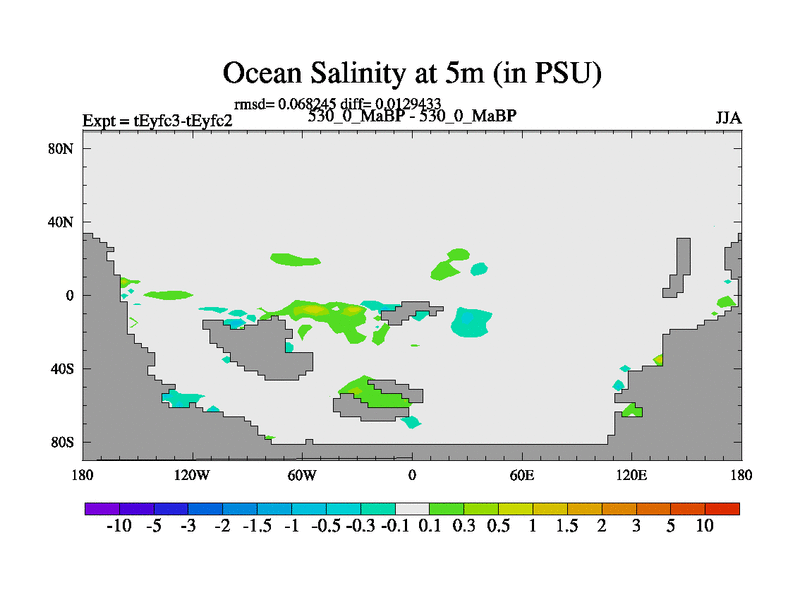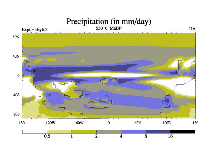 This is the 530.0 Ma simulation using the Scotese palaeogeographies and revised CCN etc. Updated HadCM3L ocean parameters and soil parameters. Also made sure orography gravity wave drag was consistent.