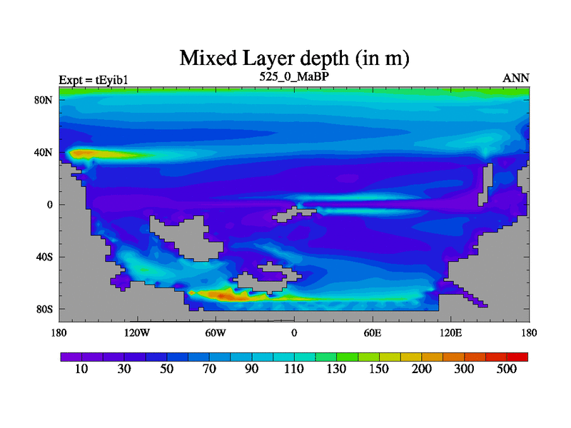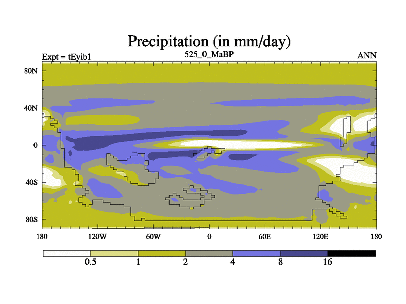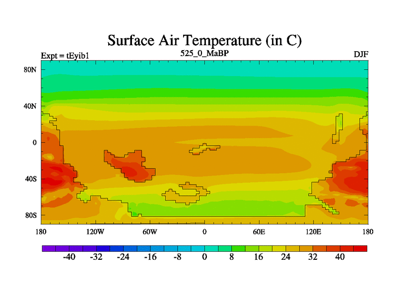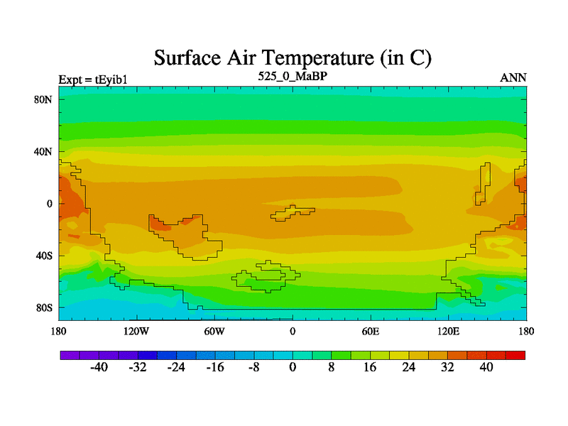 This is the 525.0 Ma simulation using the Scotese palaeogeographies and revised CCN etc. Now includes ocean biogeochemistry