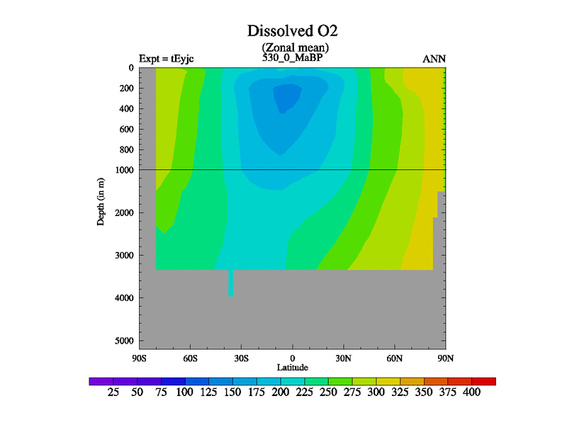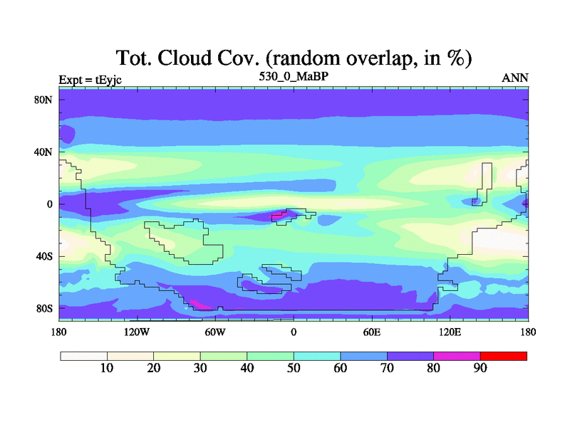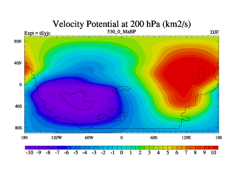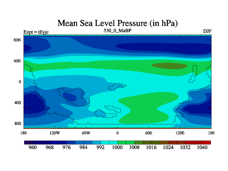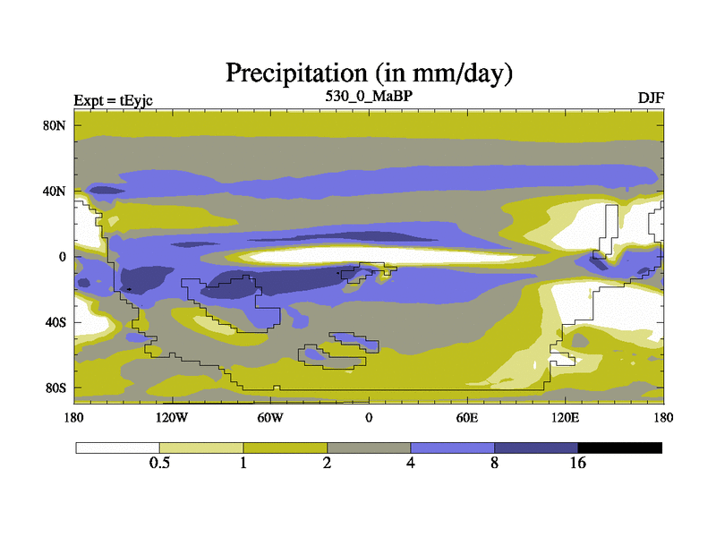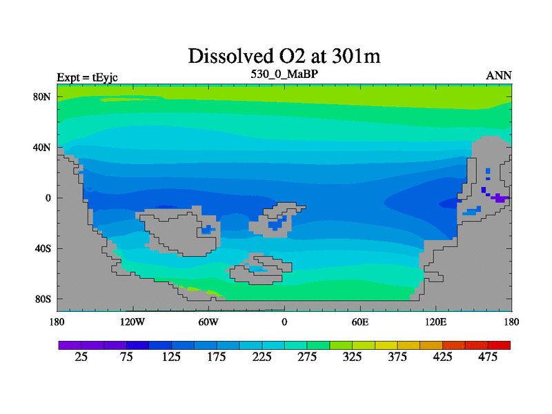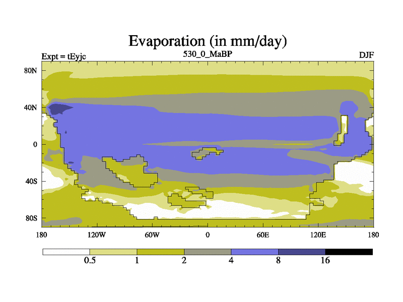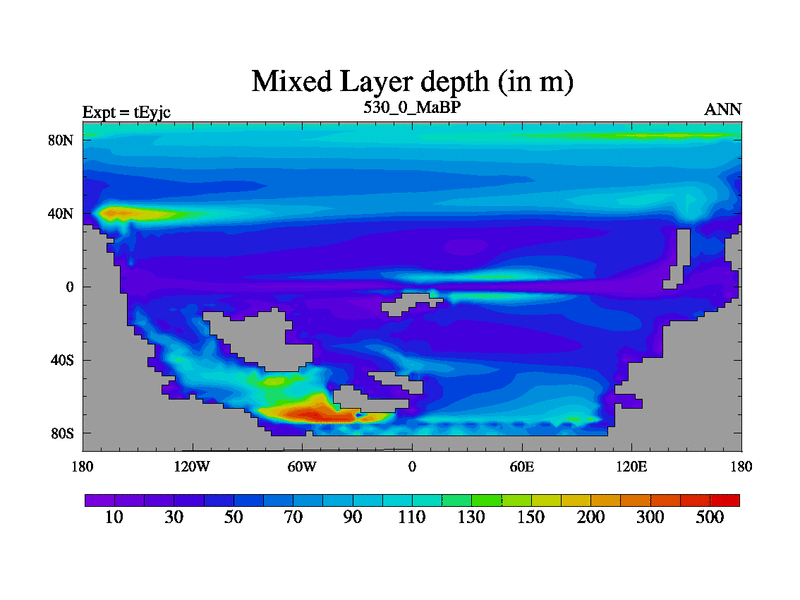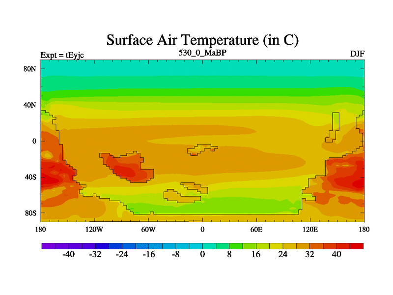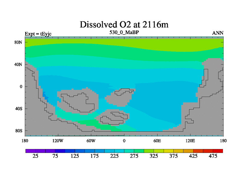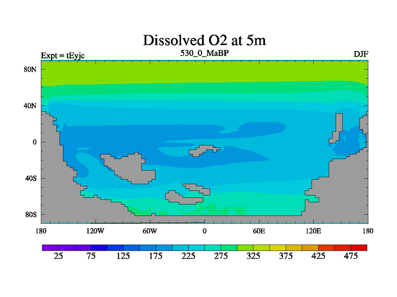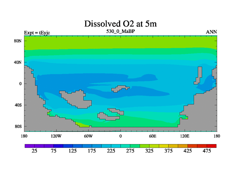 This is the 530.0 Ma simulation using the Scotese palaeogeographies and revised CCN etc. As teyfa3 but corrected orography problem over Antartartica. Now includes ocean biogeochemistry