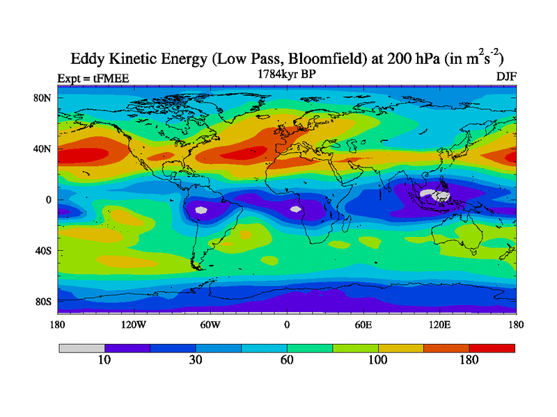 Low Pass Eddy Kinetic Energy at 200 hPa