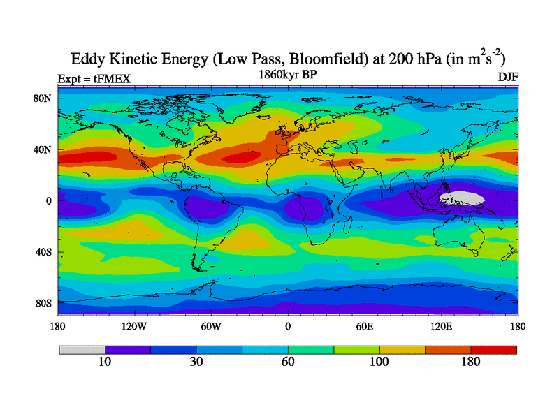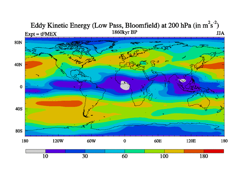 Low Pass Eddy Kinetic Energy at 200 hPa