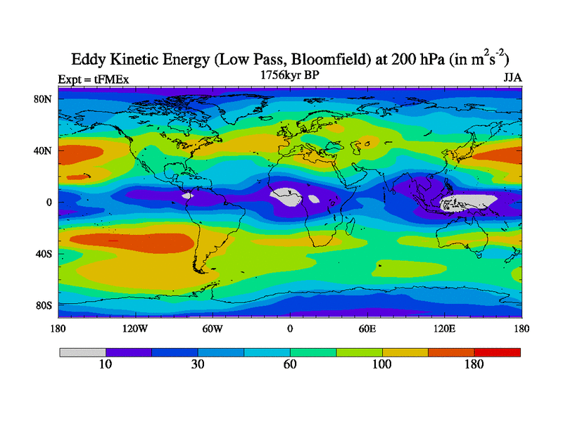 Low Pass Eddy Kinetic Energy at 200 hPa
