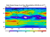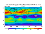 Low Pass Eddy Kinetic Energy at 200 hPa