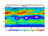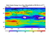 Low Pass Eddy Kinetic Energy at 200 hPa