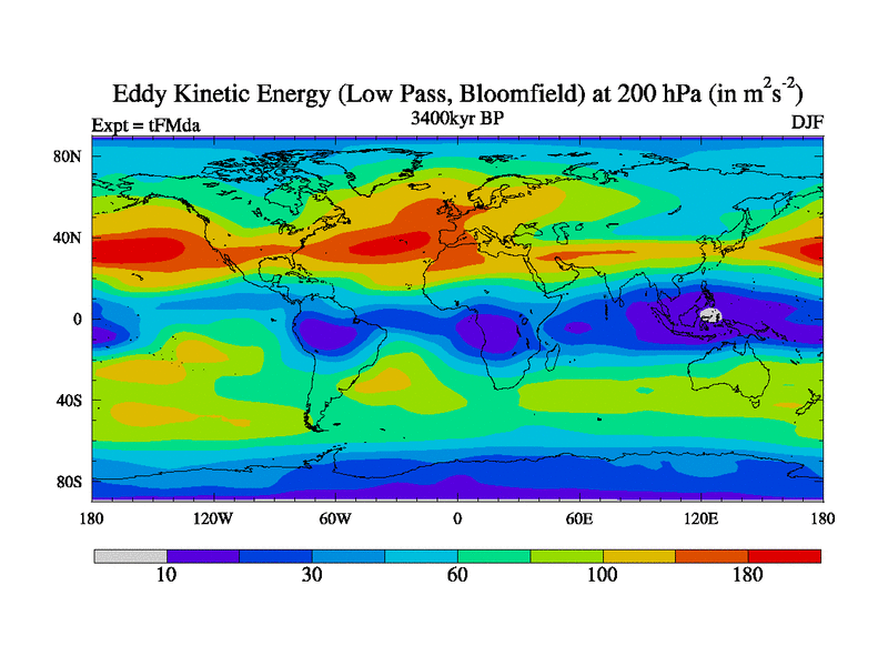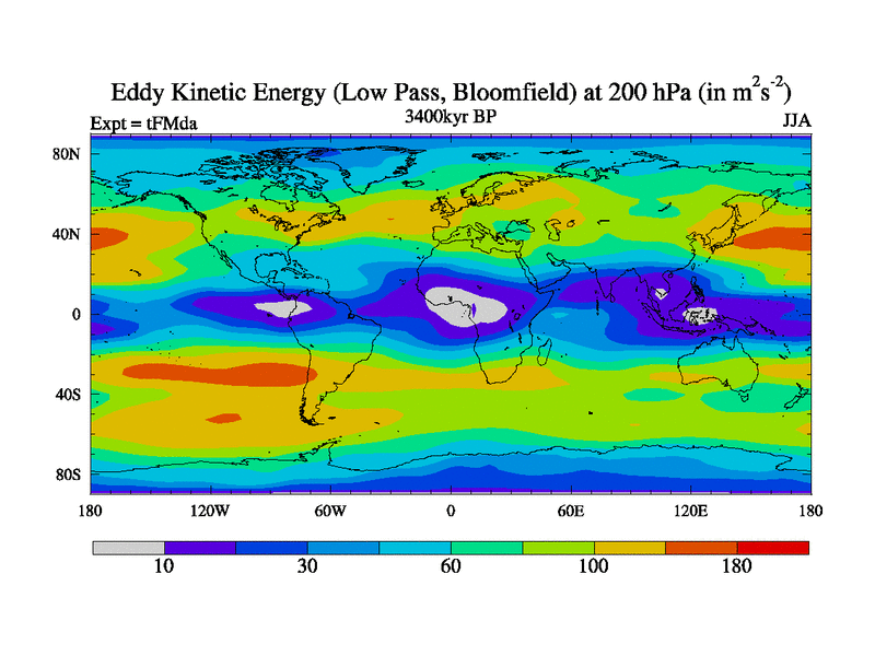 Low Pass Eddy Kinetic Energy at 200 hPa