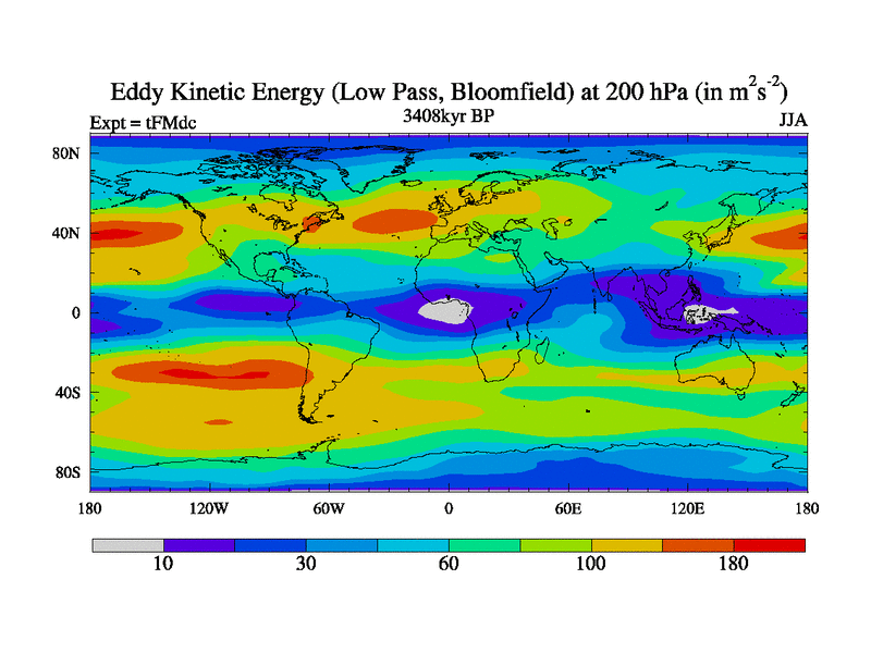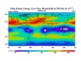 Low Pass Eddy Kinetic Energy at 200 hPa