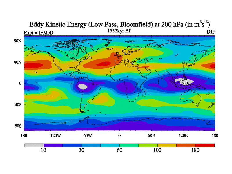 Low Pass Eddy Kinetic Energy at 200 hPa