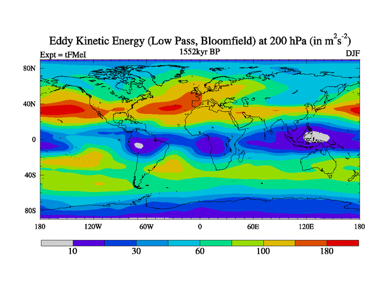 Low Pass Eddy Kinetic Energy at 200 hPa