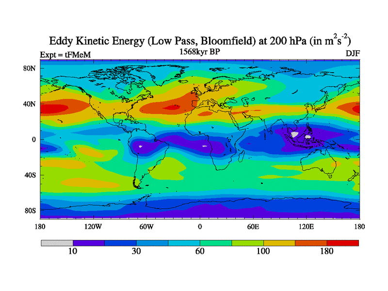 Low Pass Eddy Kinetic Energy at 200 hPa