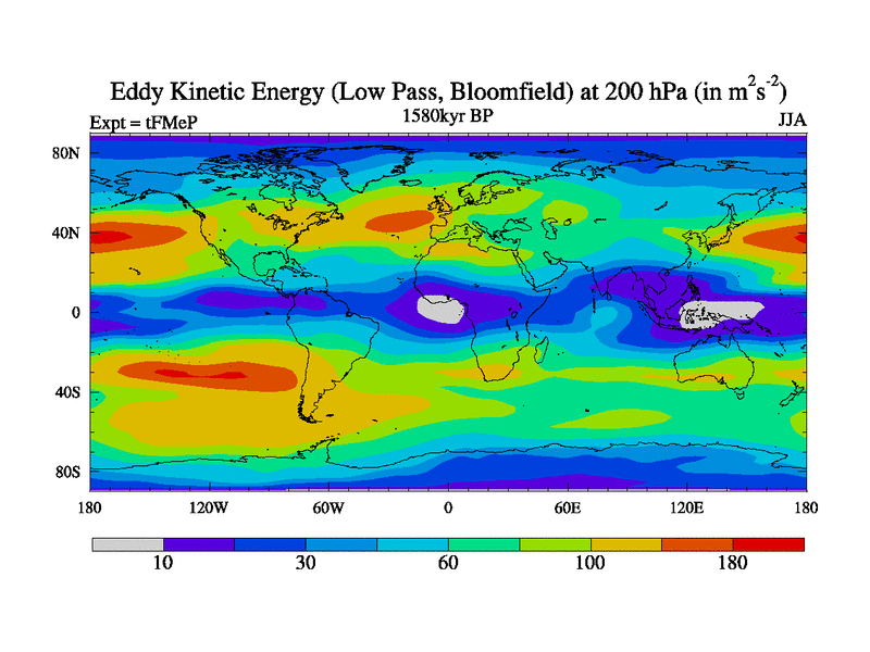 Low Pass Eddy Kinetic Energy at 200 hPa