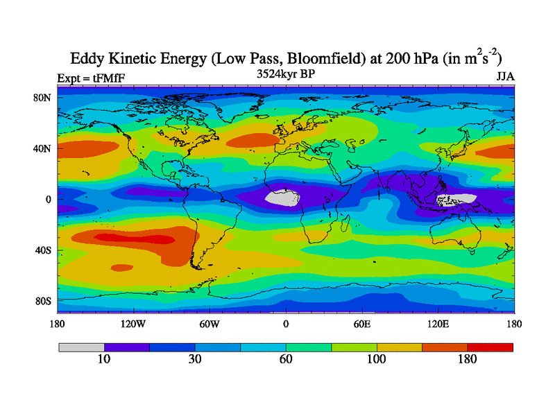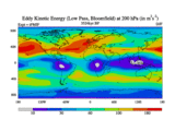Low Pass Eddy Kinetic Energy at 200 hPa