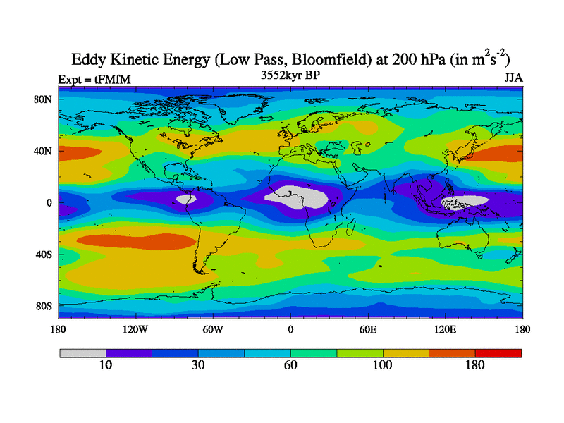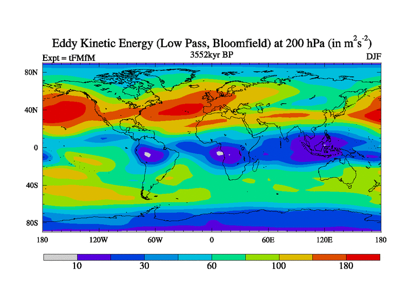 Low Pass Eddy Kinetic Energy at 200 hPa