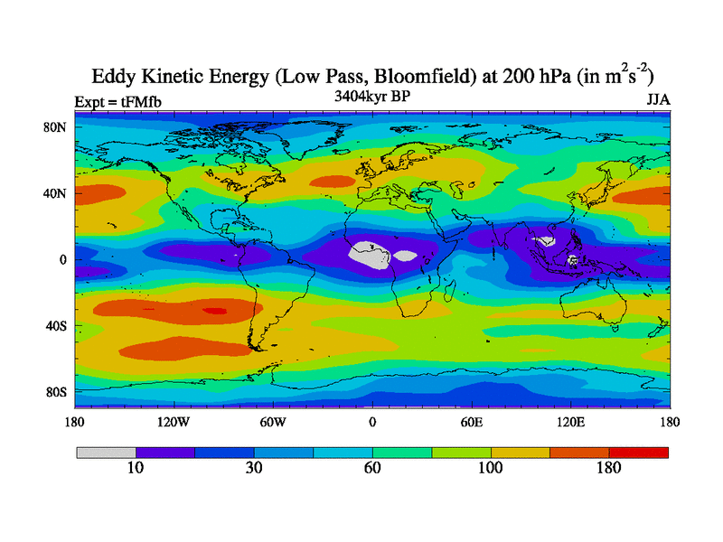 Low Pass Eddy Kinetic Energy at 200 hPa