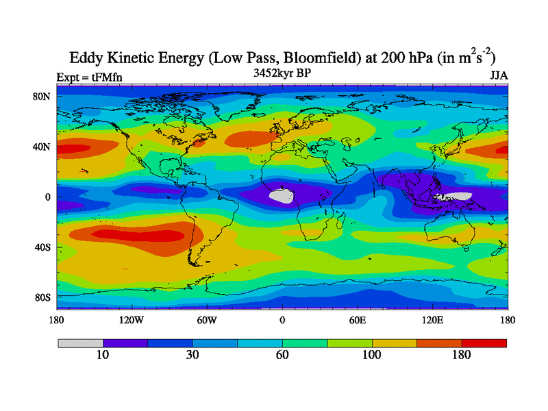 Low Pass Eddy Kinetic Energy at 200 hPa