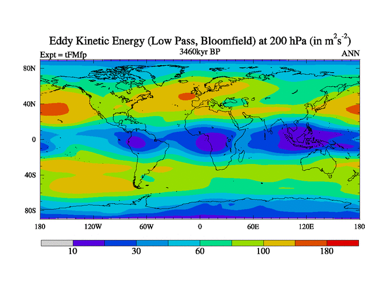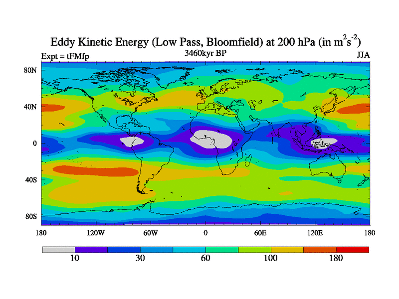 Low Pass Eddy Kinetic Energy at 200 hPa