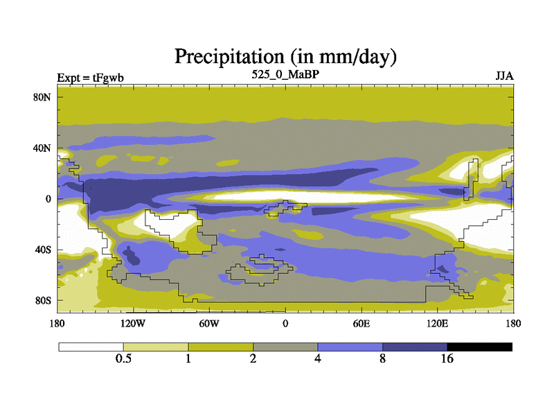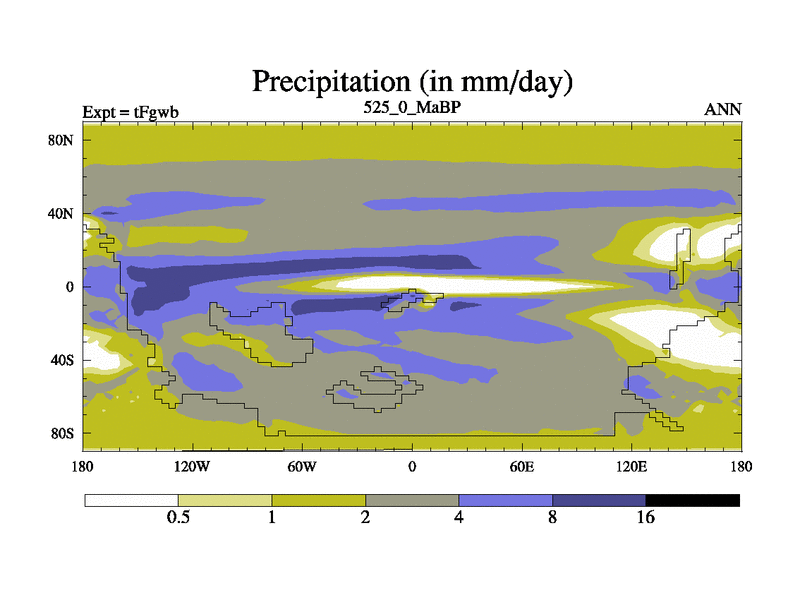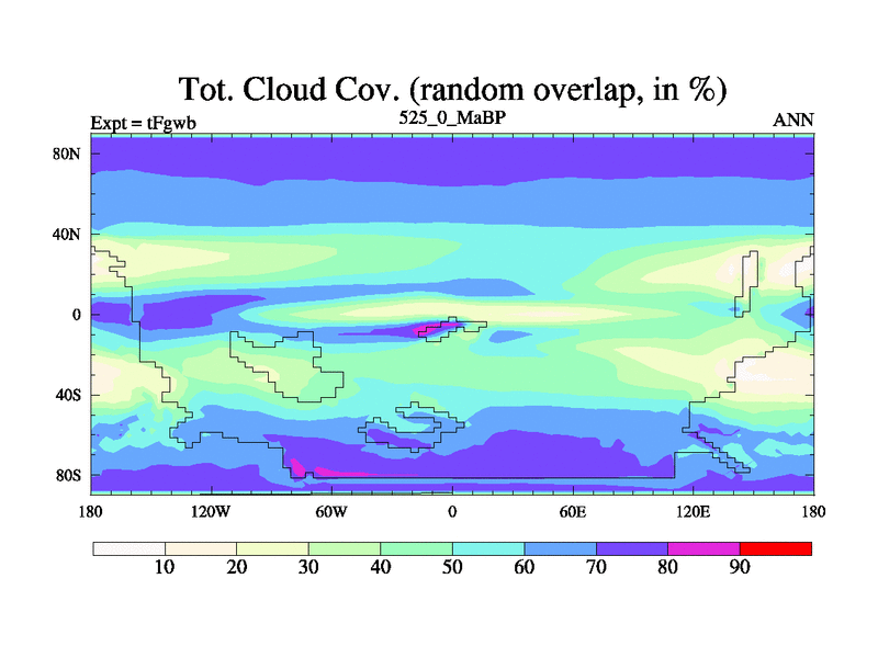 This is the 525.0 Ma simulation using the Scotese palaeogeographies and revised CCN etc. This version has islands included. Started from end of tEyeb.