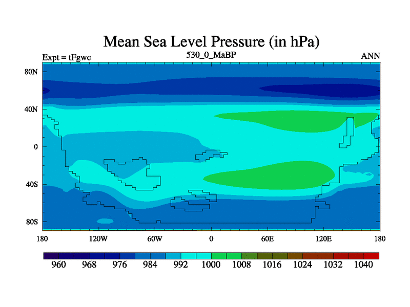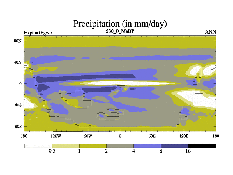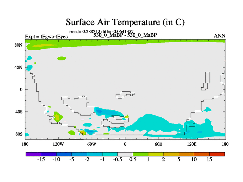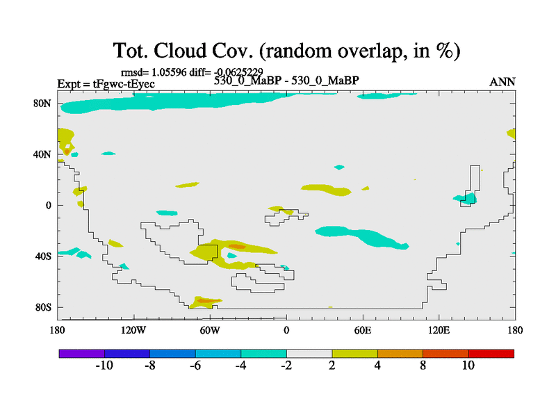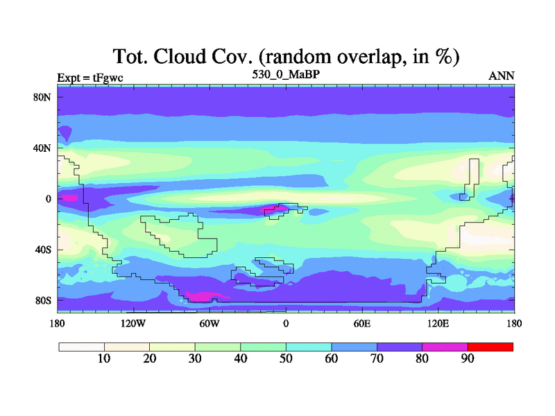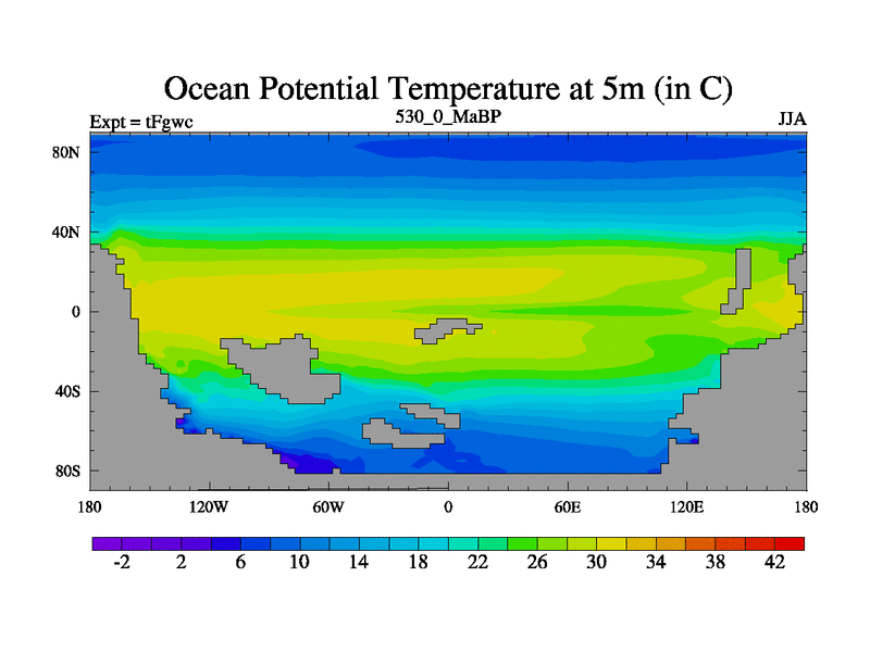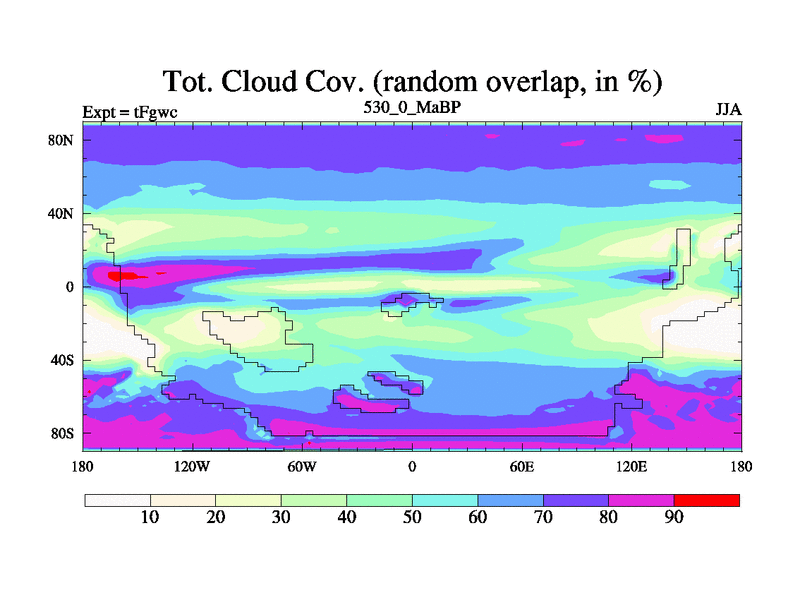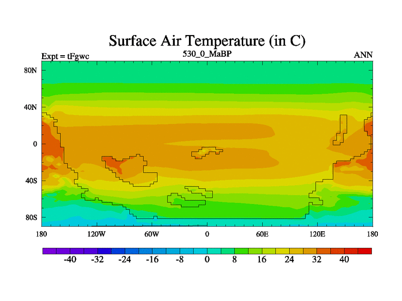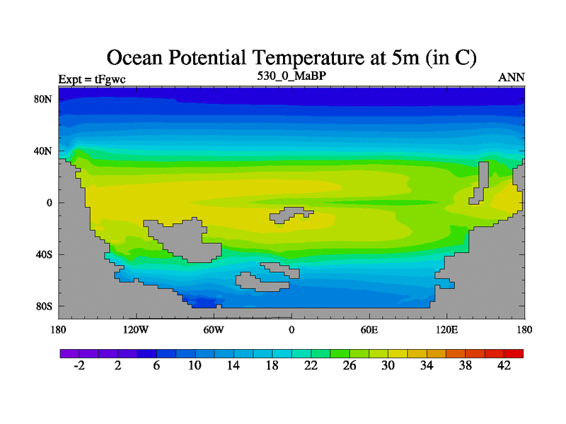 This is the 530.0 Ma simulation using the Scotese palaeogeographies and revised CCN etc. This version has islands included. Started from end of tEyec.