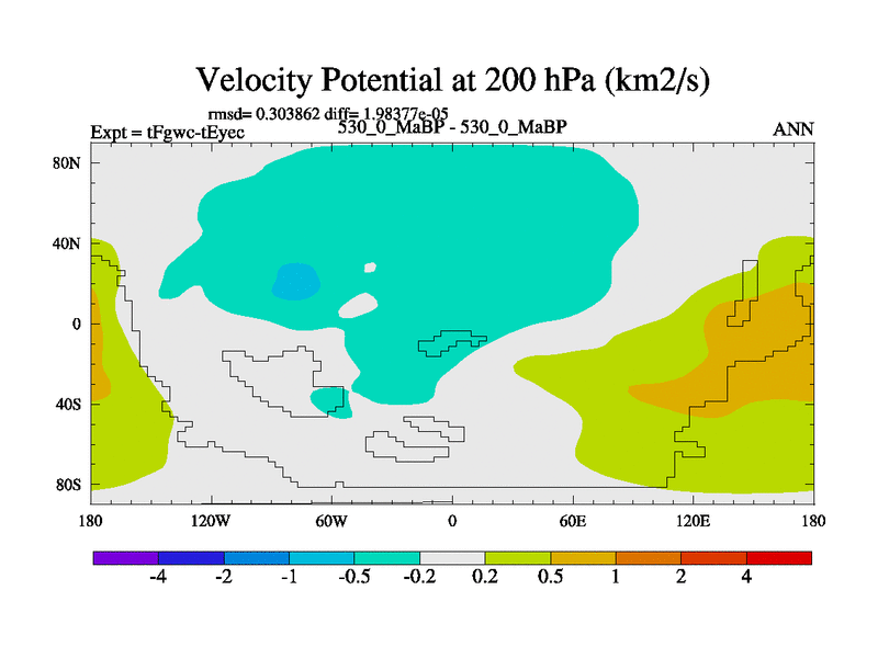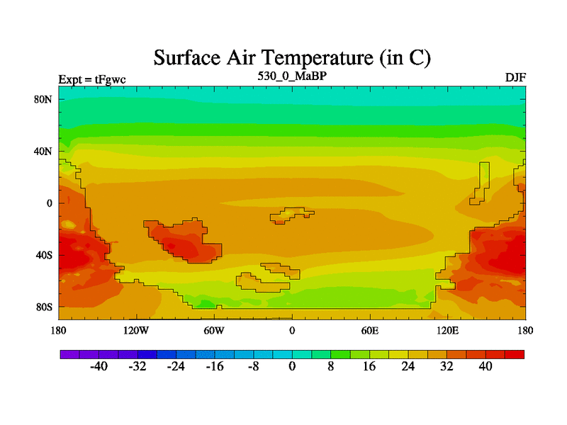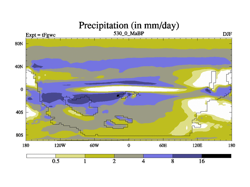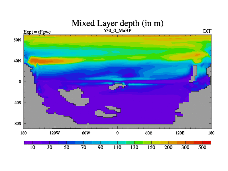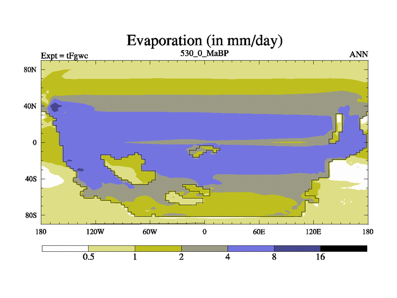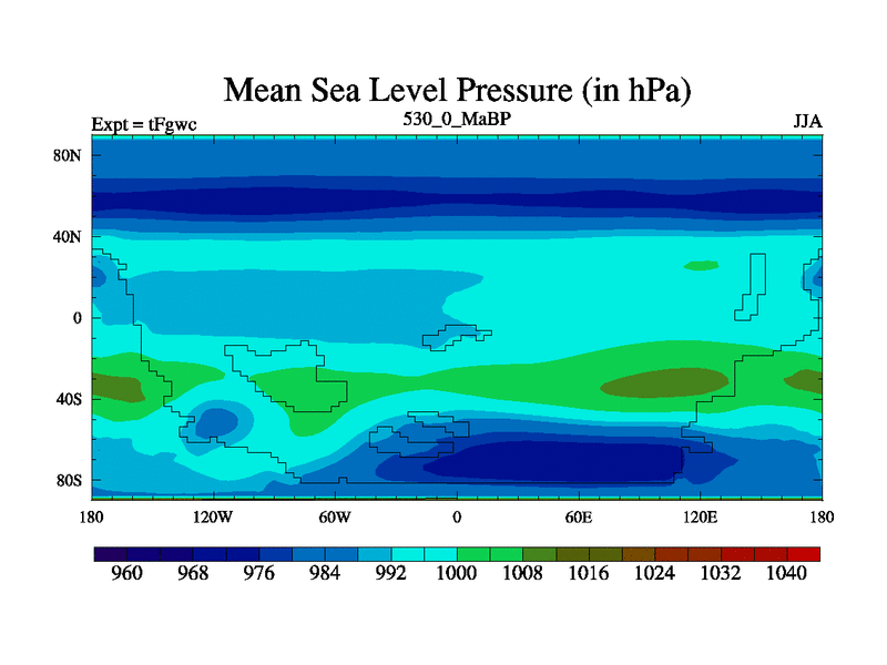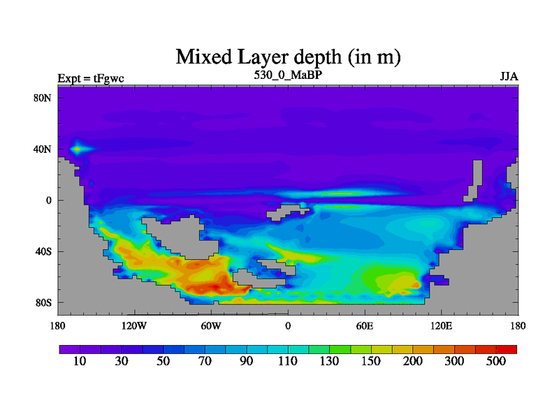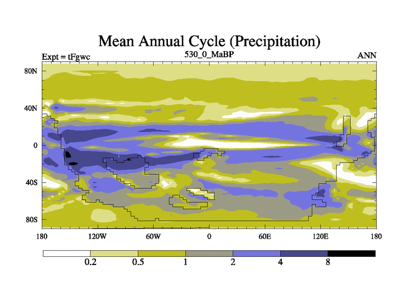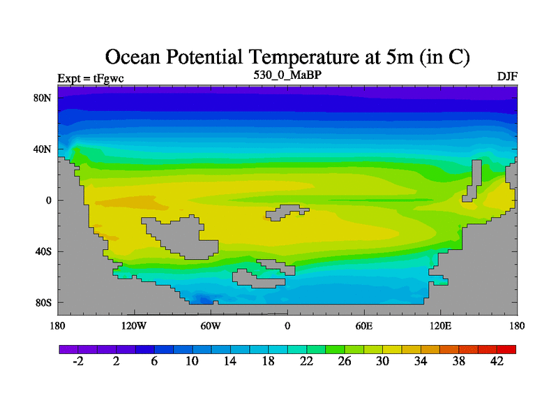 This is the 530.0 Ma simulation using the Scotese palaeogeographies and revised CCN etc. This version has islands included. Started from end of tEyec.