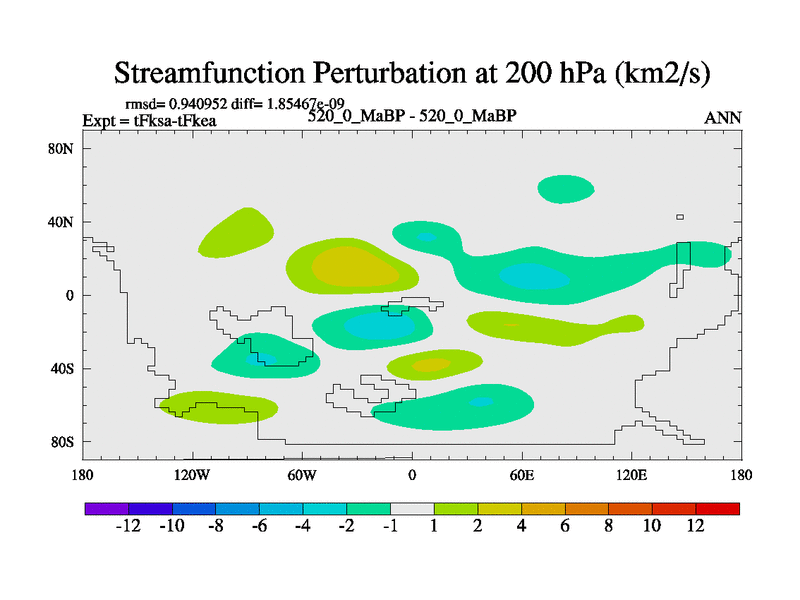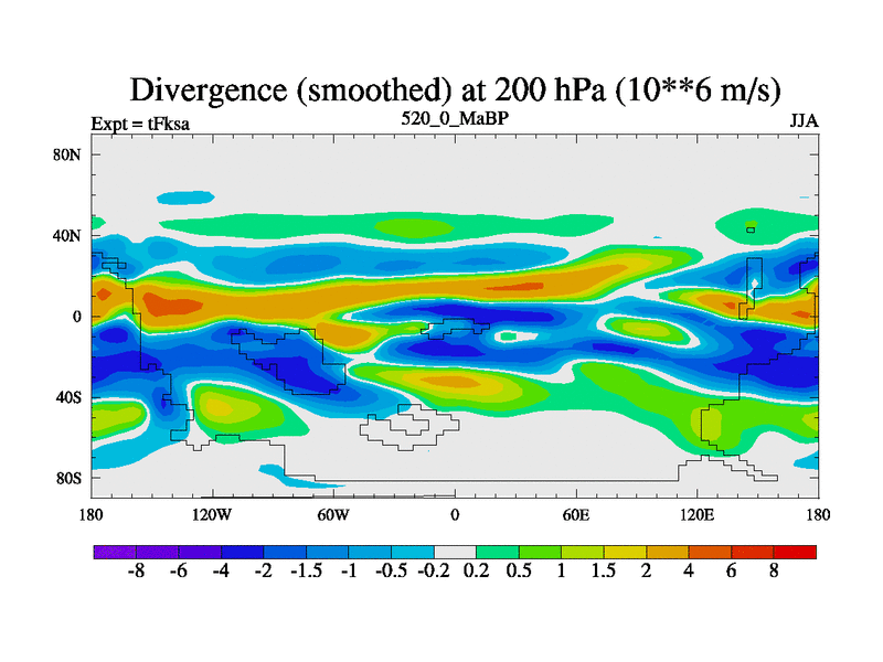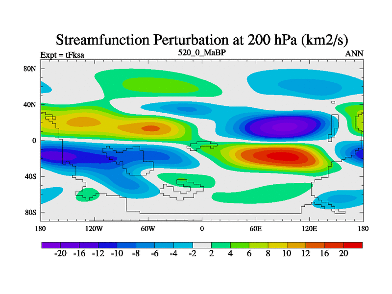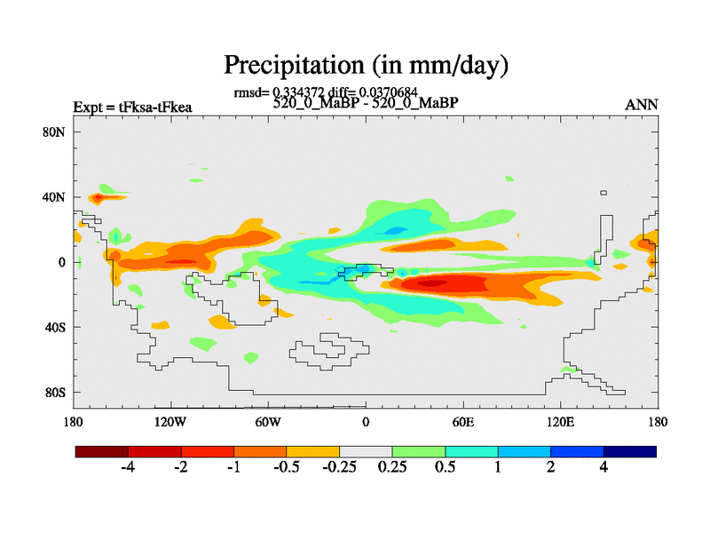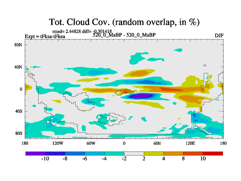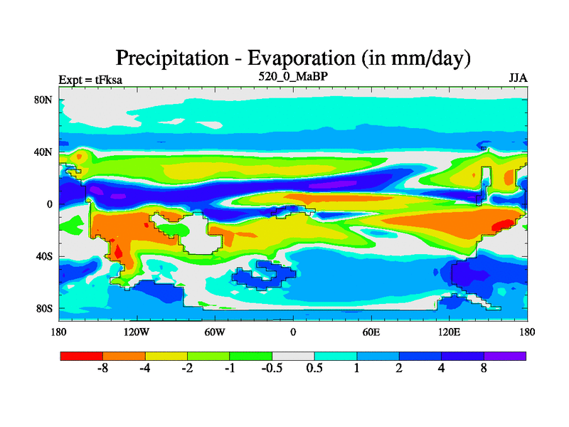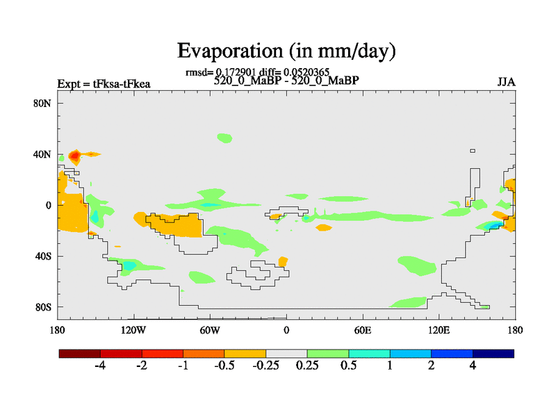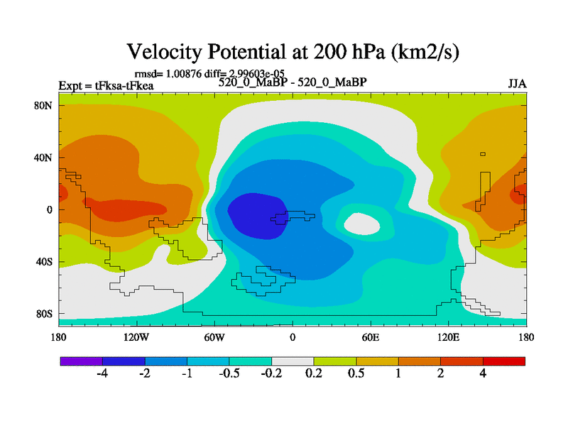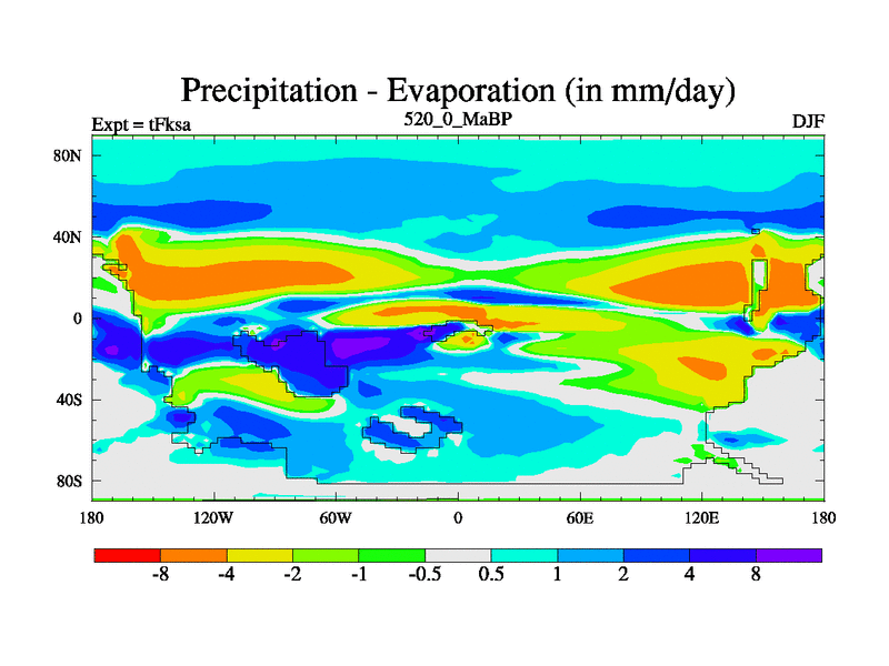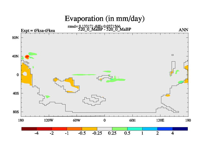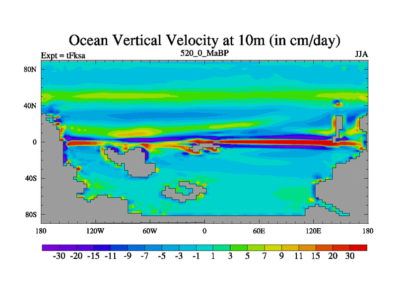 This is the 520.0 Ma simulation using the Scotese palaeogeographies and revised CCN etc. This version has islands and smoothing and desert albedo included. Tuned CO2 to give Scotese temperatures. Started from end of tFkea.