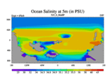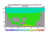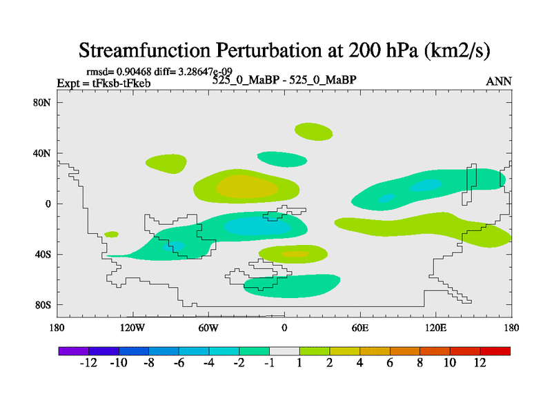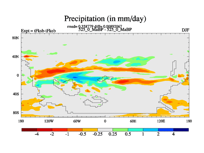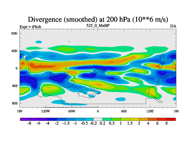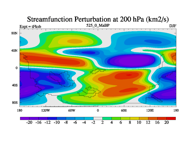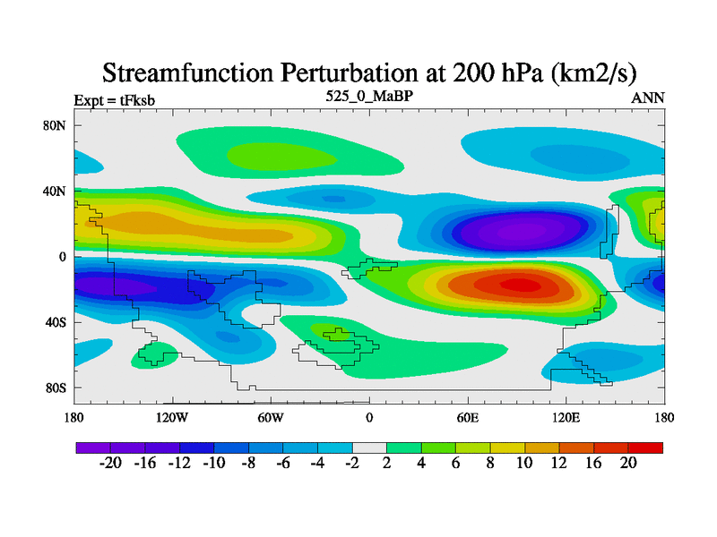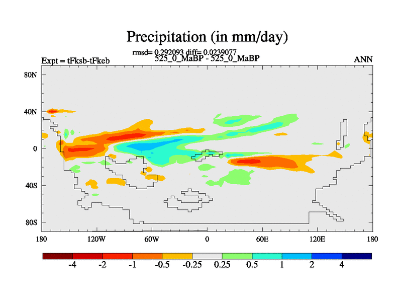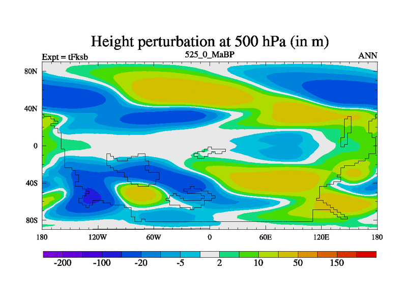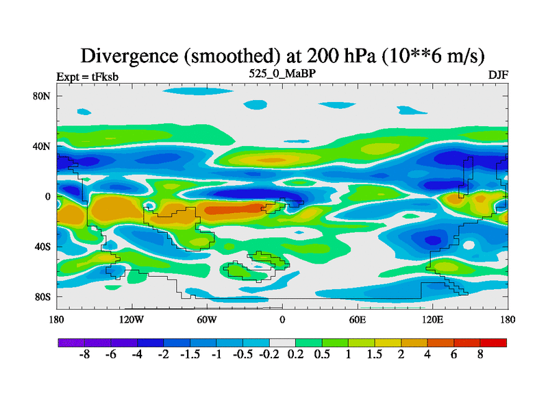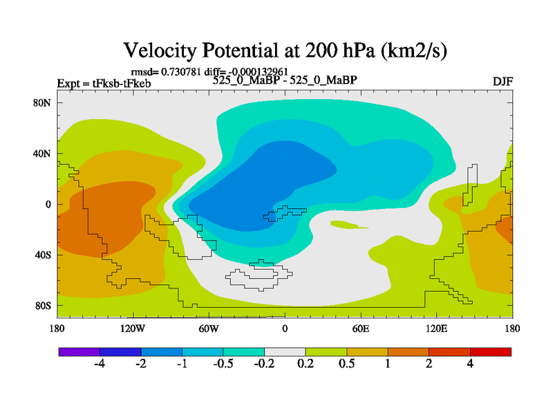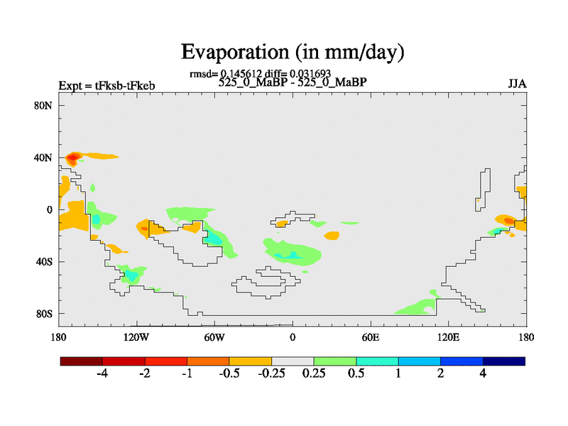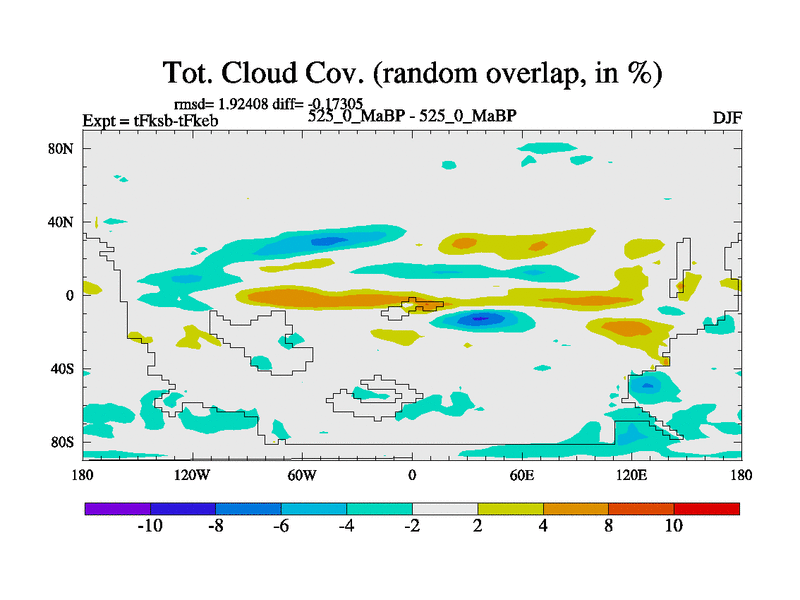 This is the 525.0 Ma simulation using the Scotese palaeogeographies and revised CCN etc. This version has islands and smoothing and desert albedo included. Tuned CO2 to give Scotese temperatures. Started from end of tFkeb.