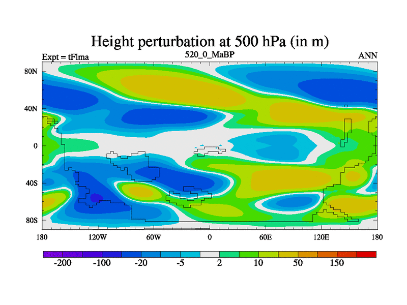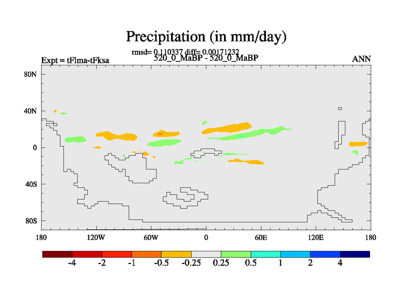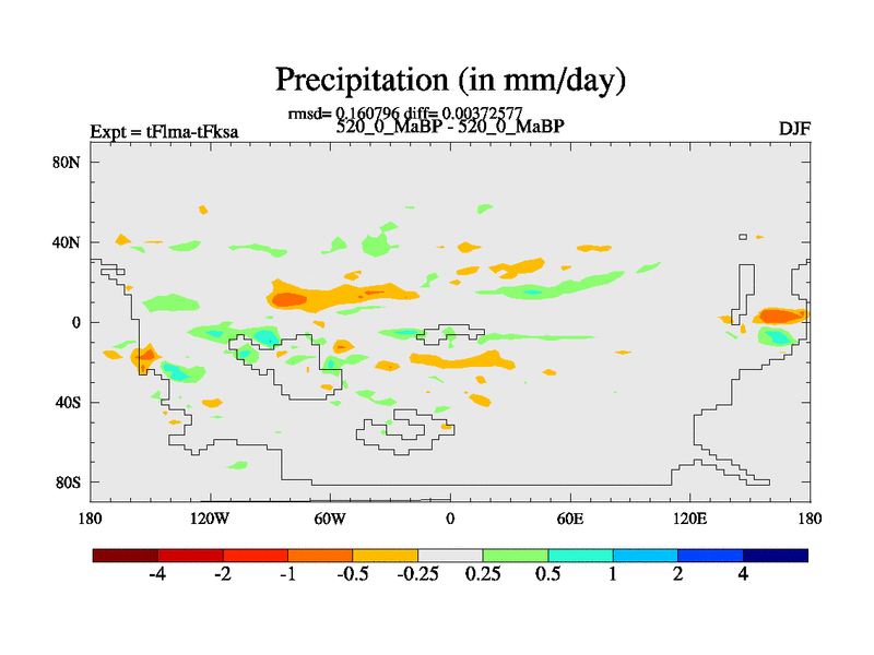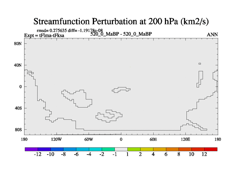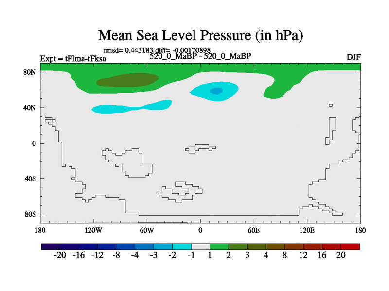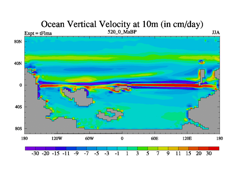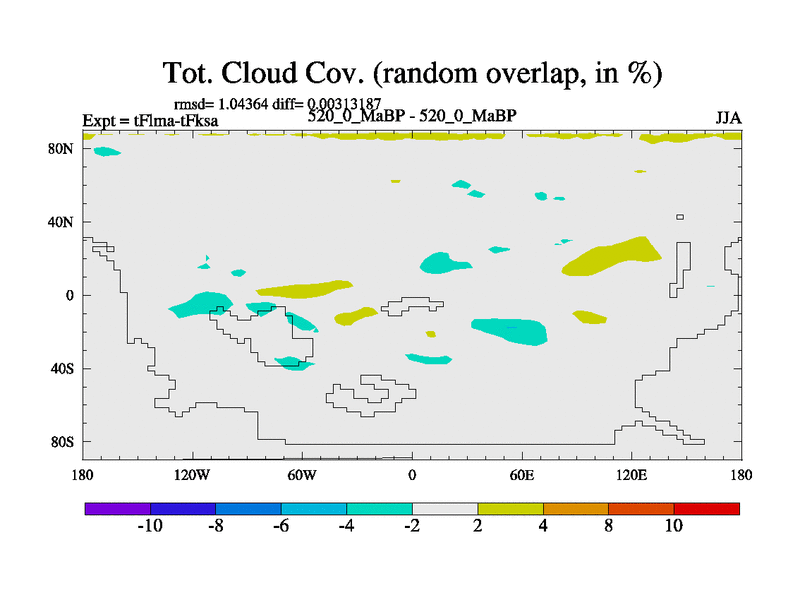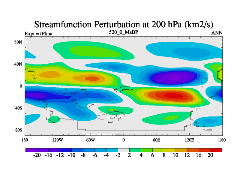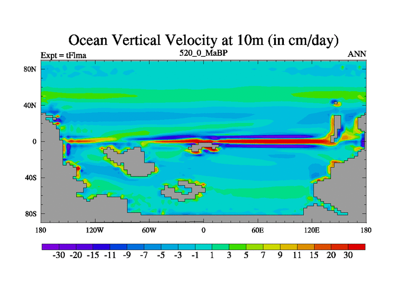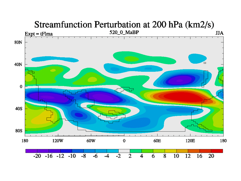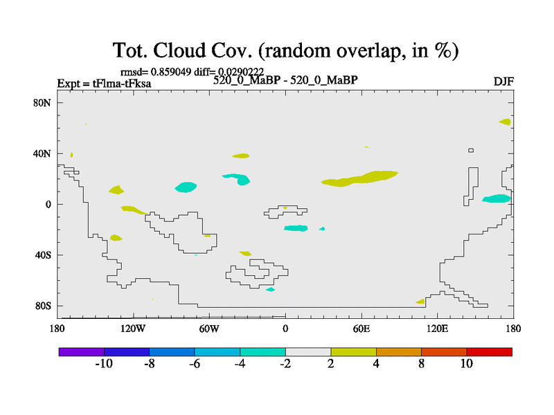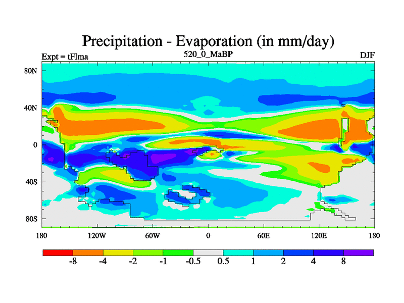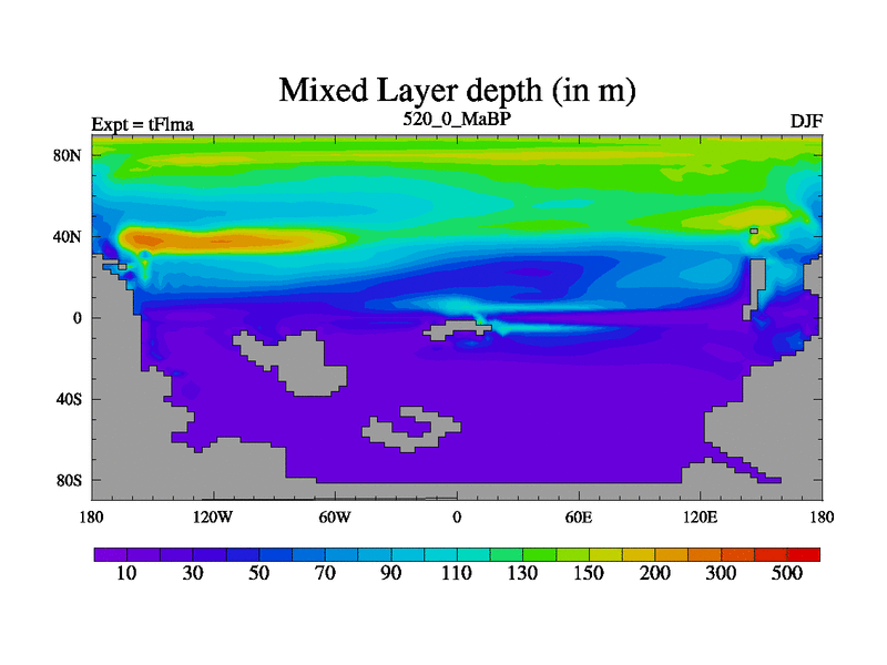 This is the 520.0 Ma simulation using the Scotese palaeogeographies and revised CCN etc. This version has islands and smoothing and desert albedo included. Tuned CO2 to give Scotese temperatures. Started from end of tFksa. With JEDI output.