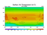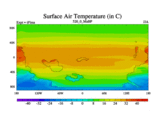 Scientifically as benchmark except using water age update, dark respiration, salinity conservation and revised ozone. Also using new orbital and solar update, and outputting leaf CO2. This version has islands included and atmospheric smoothing and desert albedo. Tuned CO2 to give Scotese temperatures. Started from end of tFksa. With JEDI output.