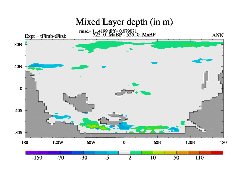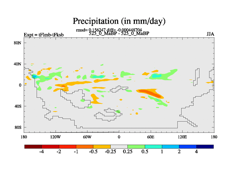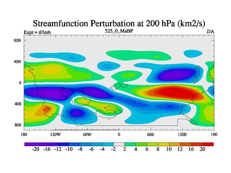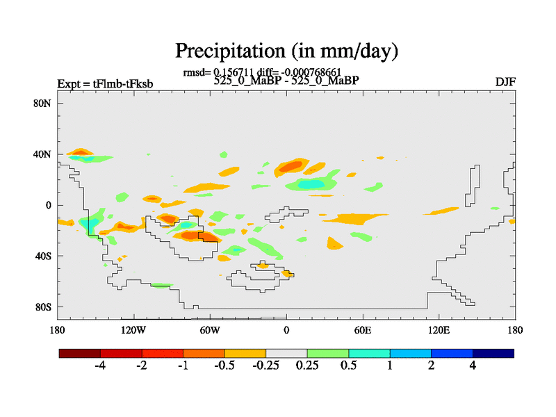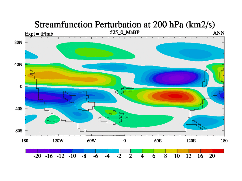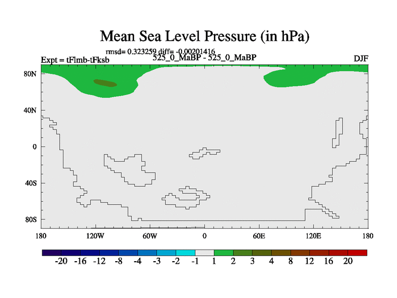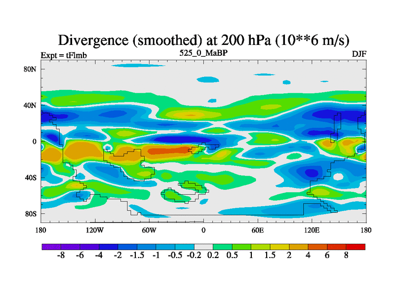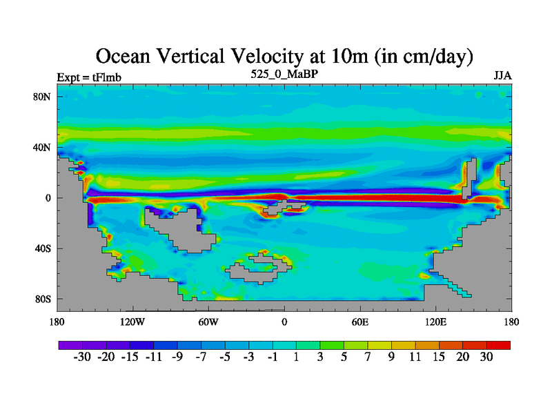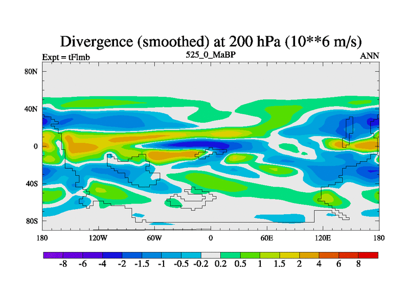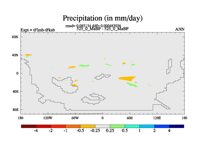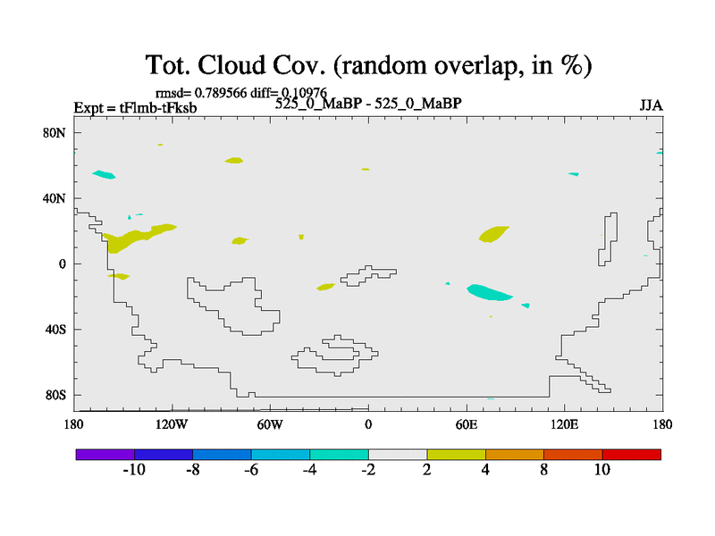 This is the 525.0 Ma simulation using the Scotese palaeogeographies and revised CCN etc. This version has islands and smoothing and desert albedo included. Tuned CO2 to give Scotese temperatures. Started from end of tFksb. With JEDI output.