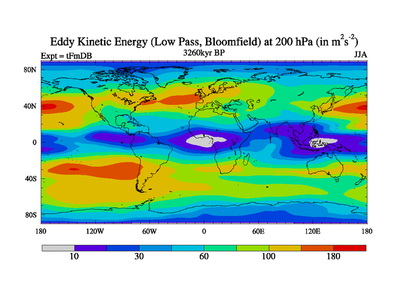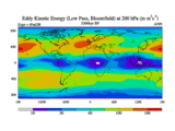 Low Pass Eddy Kinetic Energy at 200 hPa
