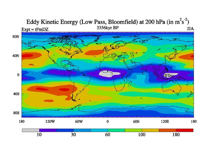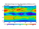 Low Pass Eddy Kinetic Energy at 200 hPa