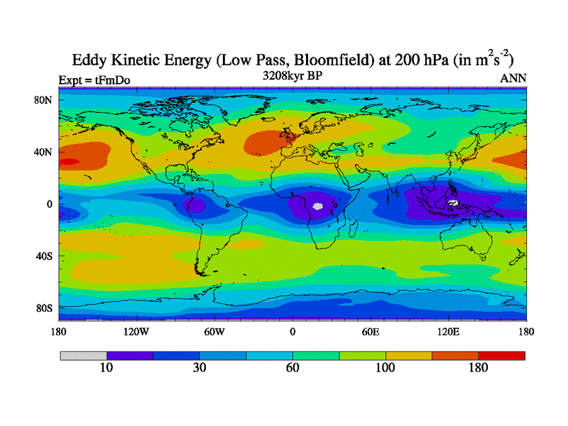 Low Pass Eddy Kinetic Energy at 200 hPa