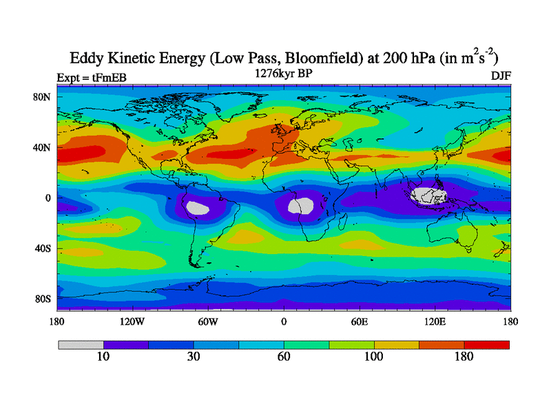 Low Pass Eddy Kinetic Energy at 200 hPa