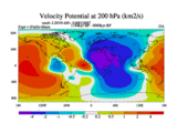 Low Pass Eddy Kinetic Energy at 200 hPa
