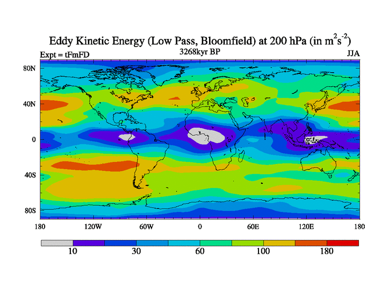 Low Pass Eddy Kinetic Energy at 200 hPa