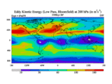 Low Pass Eddy Kinetic Energy at 200 hPa