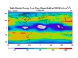 Low Pass Eddy Kinetic Energy at 200 hPa