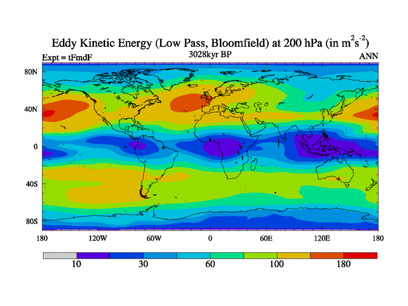 Low Pass Eddy Kinetic Energy at 200 hPa