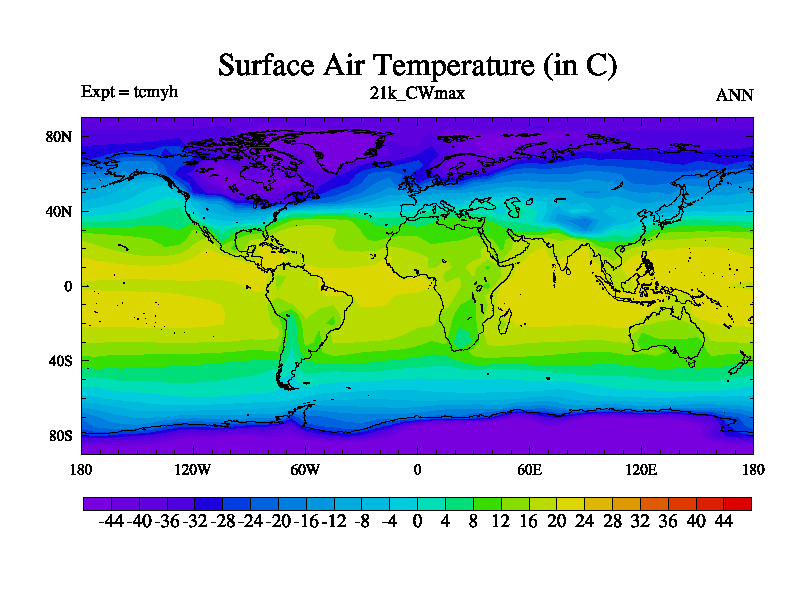 Perturbation run with LGM setup. Famous 4.5.3, 21.0k. Ice5g topog, land-sea mask and ice-sheet, 21k GHG values and higher ocean salinity. CW_land is 2.00E-03%09and CW_sea is 5.00E-04 . %0D%0A |