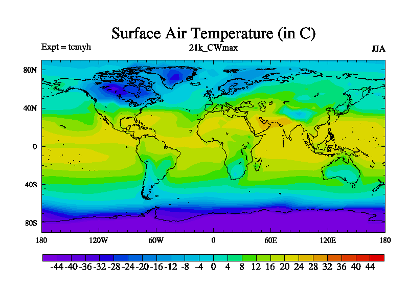 Famous 4.5.3 deglaciation 21k-20k run on babybluecrystal. Land-sea mask is constructed from ice-5g. Orital forcing and ghg concentrations (CO2, CH4, and N2O) are set to 21.0k values. CFC 0, O3 has 3 prescribed modern (not pre-industrial) values are 12 ppbv for the troposphere, 120 ppbv for the tropopause and 900 ppbv for the stratosphere. Freashwater fluxes consist of the modern ice calving flux. Run starts from 300 years of tcmul a 21k equilibrium run, length is 200 yrs. One parameter is perturbed in this run.