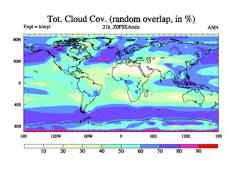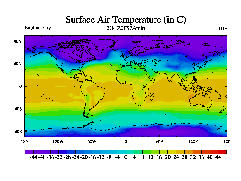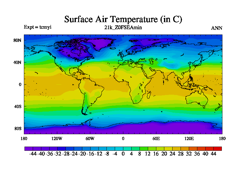 Famous 4.5.3 deglaciation 21k-20k run on babybluecrystal. Land-sea mask is constructed from ice-5g. Orital forcing and ghg concentrations (CO2, CH4, and N2O) are set to 21.0k values. CFC 0, O3 has 3 prescribed modern (not pre-industrial) values are 12 ppbv for the troposphere, 120 ppbv for the tropopause and 900 ppbv for the stratosphere. Freashwater fluxes consist of the modern ice calving flux. Run starts from 300 years of tcmul a 21k equilibrium run, length is 200 yrs. One parameter is perturbed in this run.