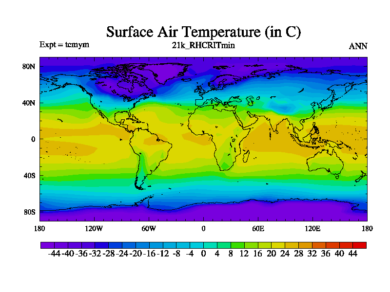 Famous 4.5.3 deglaciation 21k-20k run on babybluecrystal. Land-sea mask is constructed from ice-5g. Orital forcing and ghg concentrations (CO2, CH4, and N2O) are set to 21.0k values. CFC 0, O3 has 3 prescribed modern (not pre-industrial) values are 12 ppbv for the troposphere, 120 ppbv for the tropopause and 900 ppbv for the stratosphere. Freashwater fluxes consist of the modern ice calving flux. Run starts from 300 years of tcmul a 21k equilibrium run, length is 200 yrs. One parameter is perturbed in this run.
